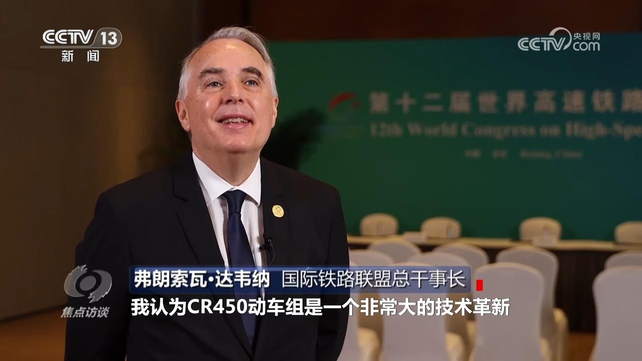 在第十二届世界高速铁路大会上,国际铁路联盟总干事长参观了CR450动车组样车,作出了这样的评价。