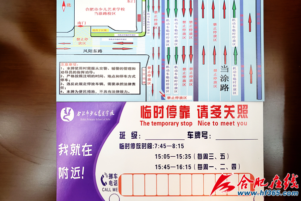 “合肥市少儿艺术学校目前有2400余名学生,家长车辆统计有一千余量,该校地处东二环与凤阳东路交口,周围还有商业综合体,平时车流量非常大,上放学时间这里的道路环境非常复杂。我们也一直寻找方便家长接送孩子,减少对正常交通影响的方法。”合肥市公安局交通警察支队瑶海大队四中队中队长杜汝达告诉记者,通过发放临时停车牌的形式,将增强家长的交通安全意识,并规范家长的行为。“临时停车牌上明确写有‘本牌为便民措施,不具有法律效力’的字样,即使有临时停车牌,也一定要服从交警的指挥,严格按照停放地点和时间停车,违者将依法处理,希望广大学生家长遵守法律法规,给孩子做个好榜样。”