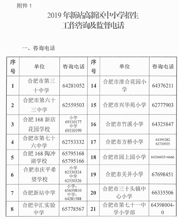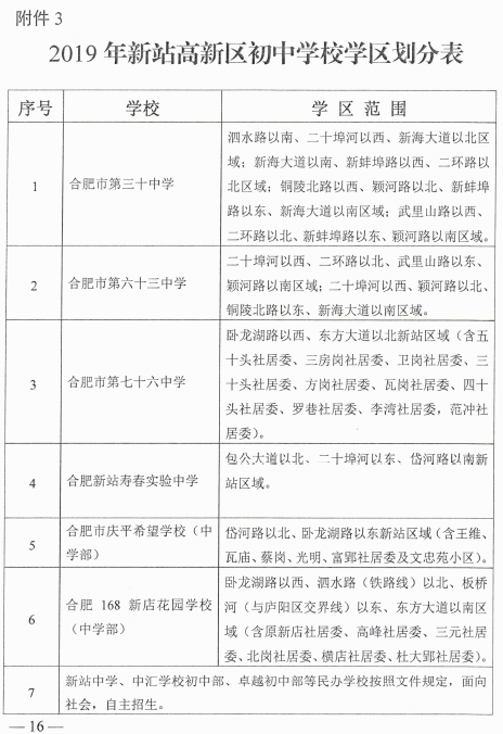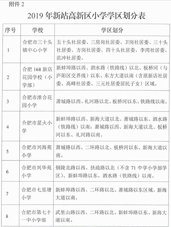 安徽网讯 今天下午,2019年合肥新站区义务教育阶段招生方案发布。具体如下: