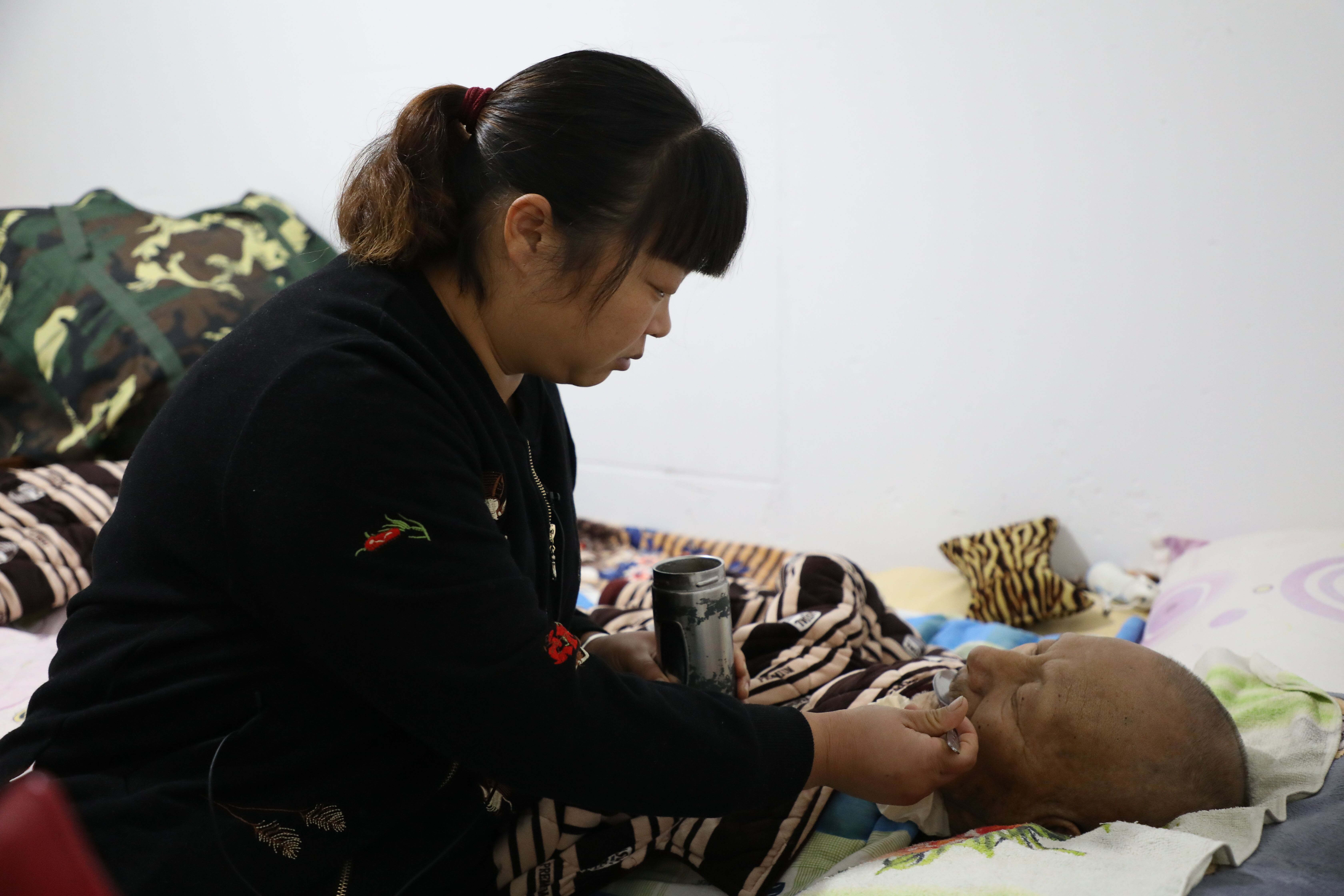 随着病情的恶化,大伯从出不了门,到下不了床,今年已经彻底卧床不起了,大小便都只能在床上解决。洗衣,做饭,喂饭,喂药,甚至清理大小便,程俊芝都做得无微不至,也日复一日。很多次,看到侄媳妇和侄子这么辛苦,大伯自己都想放弃了,甚至拒绝吃药,但是在程俊芝的劝说或是“威逼”下,又重新拾起了希望。