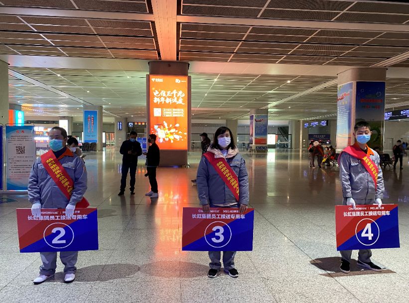 合肥美菱公司负责人介绍,该公司近日海外订单增加,但是受“新冠”肺炎疫情影响,员工返厂率不足,订单生产急缺人手。为确保产能不受影响,在两省、两市地方政府大力支持下,四川绵阳长虹总部将其598名体检合格老员工通过共享员工的方式支援给合肥美菱,为解决这么多人的交通问题,合肥经开区人社部门迅速为合肥美菱启动“点对点”包车返岗服务。“乘坐高铁应该是最安全快捷的交通方式,由于四川绵阳没有直达合肥的列车,四川长虹联络铁路部门进行了本次包车,铁路部门专门设计了行驶线路。”