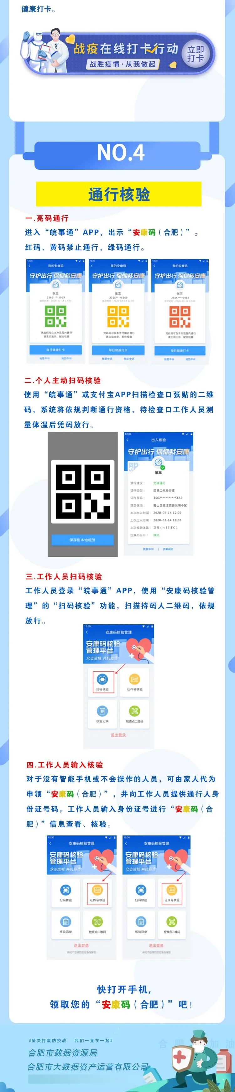 为深入贯彻中央和省市决策部署,助力疫情科学精准防控、更好地统筹城市发展、安全有序复工复产、服务群众生产生活,经研究决定,拟结合前期开展的返(来)肥人员健康登记和居民健康信息登记,在全市推广使用“安康码(合肥)”,通过采用“一人一码、一码三色”方式,促进精准防控工作。现就有关事项通告如下: