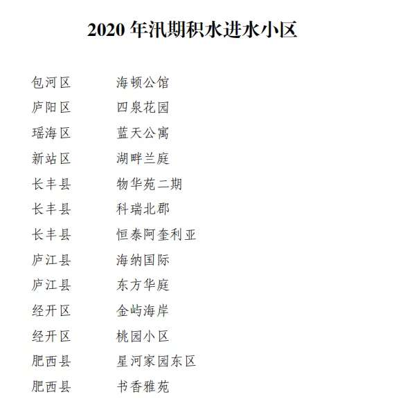 作为主管部门,合肥市住房保障和房产管理局要求各县(市)区、开发区物业主管部门要进一步加大对辖区内住宅小区的督查力度,重点督查易涝小区和老旧小区,特别是今年以来发生过积水进水的 13 个小区,督促物业服务企业做好应对防范措施。对工作不力、措施不实的物业服务企业要重点督办,责令立即整改,确保住宅小区安全度汛。