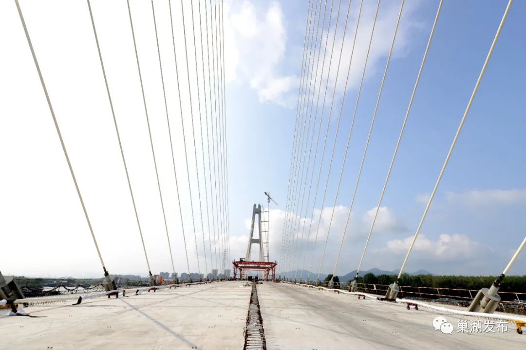 据了解,巢湖大桥为双塔双索面预应力砼斜拉桥,于2018年1月12日正式开工建设,项目全长近2150米,其中桥梁长1122米,主桥跨径460米。计划12月底具备通车条件。大桥建成后,将极大地完善当地交通路网结构,对推动当地经济社会发展产生积极而深远的影响,也将成为环巢湖一道亮丽的风景线。