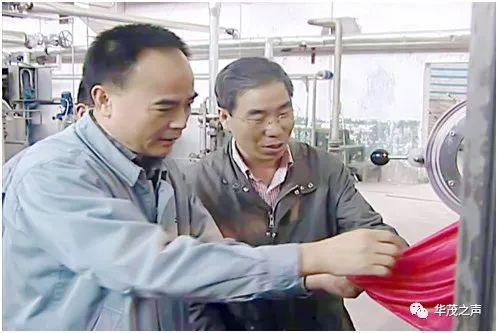 华茂集团董事长倪俊龙与武汉纺织大学教授徐卫林在攻关现场(图片来源:华茂之声微信公众号)