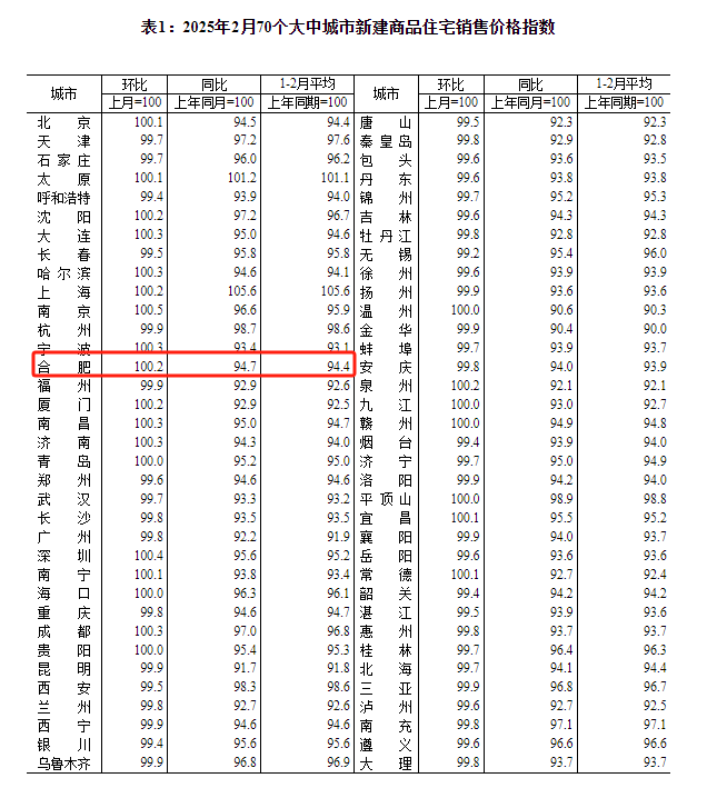 3月17日,国家统计局发布今年2月全国70个大中城市商品住宅销售价格变动情况。2月,合肥新房价格环比上涨0.2%,为近1年来首次上涨;新房同比下降5.3%,比1月降幅收窄0.6个百分点。合肥二手房价格环比下跌0.3%,比1月降幅收窄0.1个百分点;同比下跌8.2%,比上个月降幅收窄0.2个百分点。