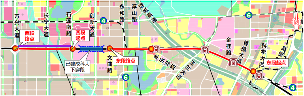 此次改造范围东起科学大道,西至方兴大道,全长约7.4公里。工程将按照城市主干路标准,打造双向六车道的现代化道路,设计时速60公里,并针对不同路段进行定制化改造。比如,对早年建成的香樟大道至玉兰大道,将破损混凝土路面升级为沥青路面,维修其他路段破损沥青路面。对丰乐河路至文曲路段及石莲南路-方兴大道段,新增非机动车道和人行道,完善慢行系统。同时还将建设2.1公里地下综合管廊,实现市政设施的“地下升级”。