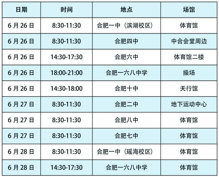 6月26日至28日,合肥市教育局组织开展高考志愿填报服务活动。今年合肥市教育局牵头组建“志愿填报服务团”,整合省市级招考专家、名校教师、高校招生教师,确保政策解读零误差、策略指导专业化。活动分为线上线下两部分,线上,全市分片区开展4场专题讲座普及高招政策、系统传授方法,教会考生和家长熟练运用平台、精准指导服务,全市高中统一组织收看。线下计划举办十场高校招生咨询会,省内外近百所高校将在合肥一中、合肥六中、合肥八中等学校内设展位,方便考生和家长面对面了解招生要求。