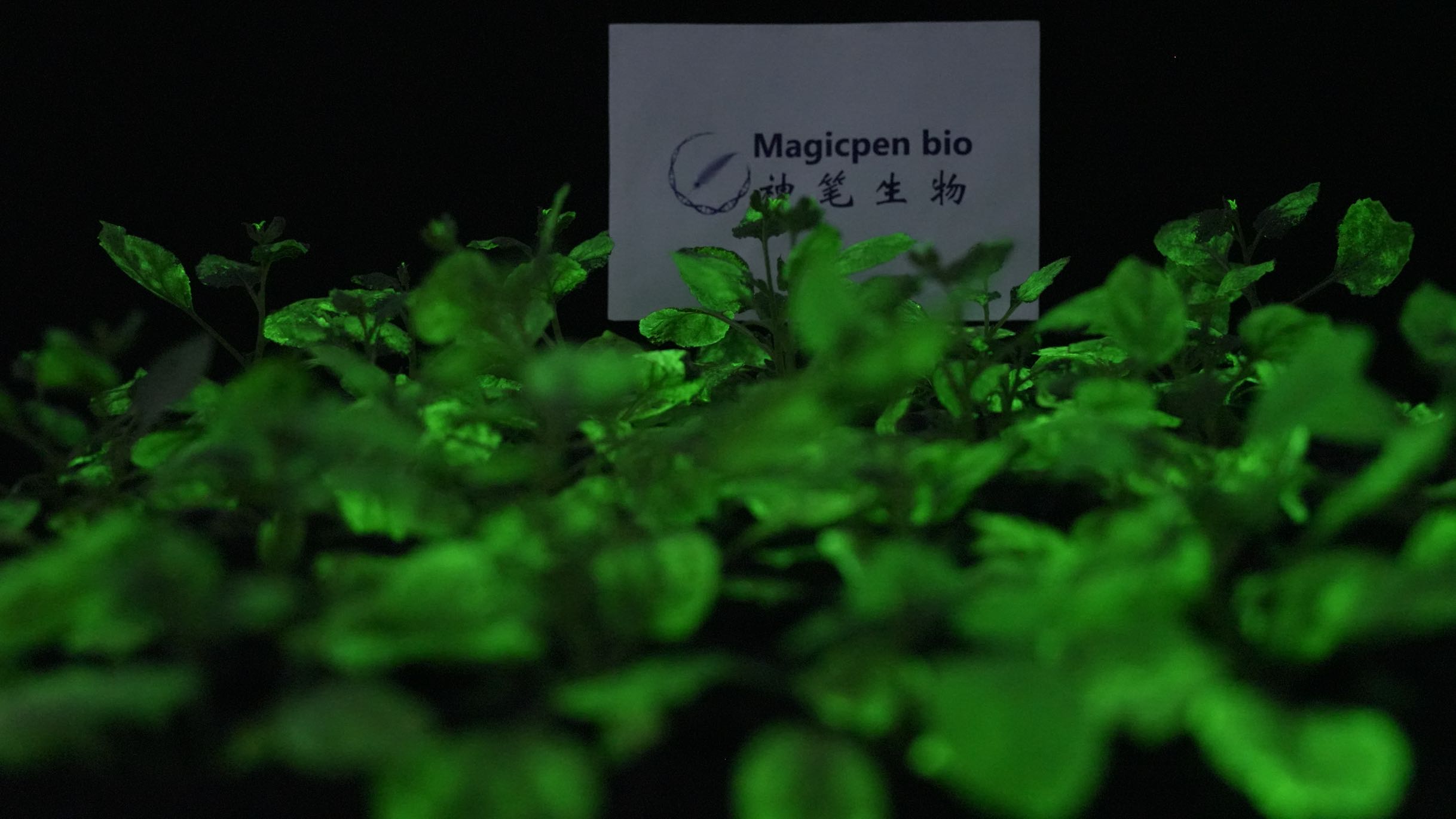 走进合肥神笔生物科技有限公司展厅,数盆“红花烟草”整齐陈列在展架上。叶片呈绿色、外形小巧的它们看似普通,一旦室内灯光熄灭,独有的“自发光”属性便即刻显现——3到4盆植物的“绿光”亮度堪比一盏普通小夜灯。这正是该公司研发团队2024年通过基因编辑技术创造的基因编辑高亮度夜晚自发光植物。
