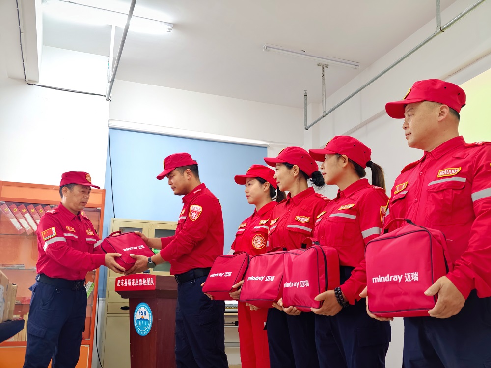 4月22日,合肥市肥东县阳光应急救援队迎来“硬核升级”,首批专用车载AED(自动体外除颤器)完成配备,5名核心队员人手一台,成为安徽省首支系统化配备车载AED的社会应急救援队伍。