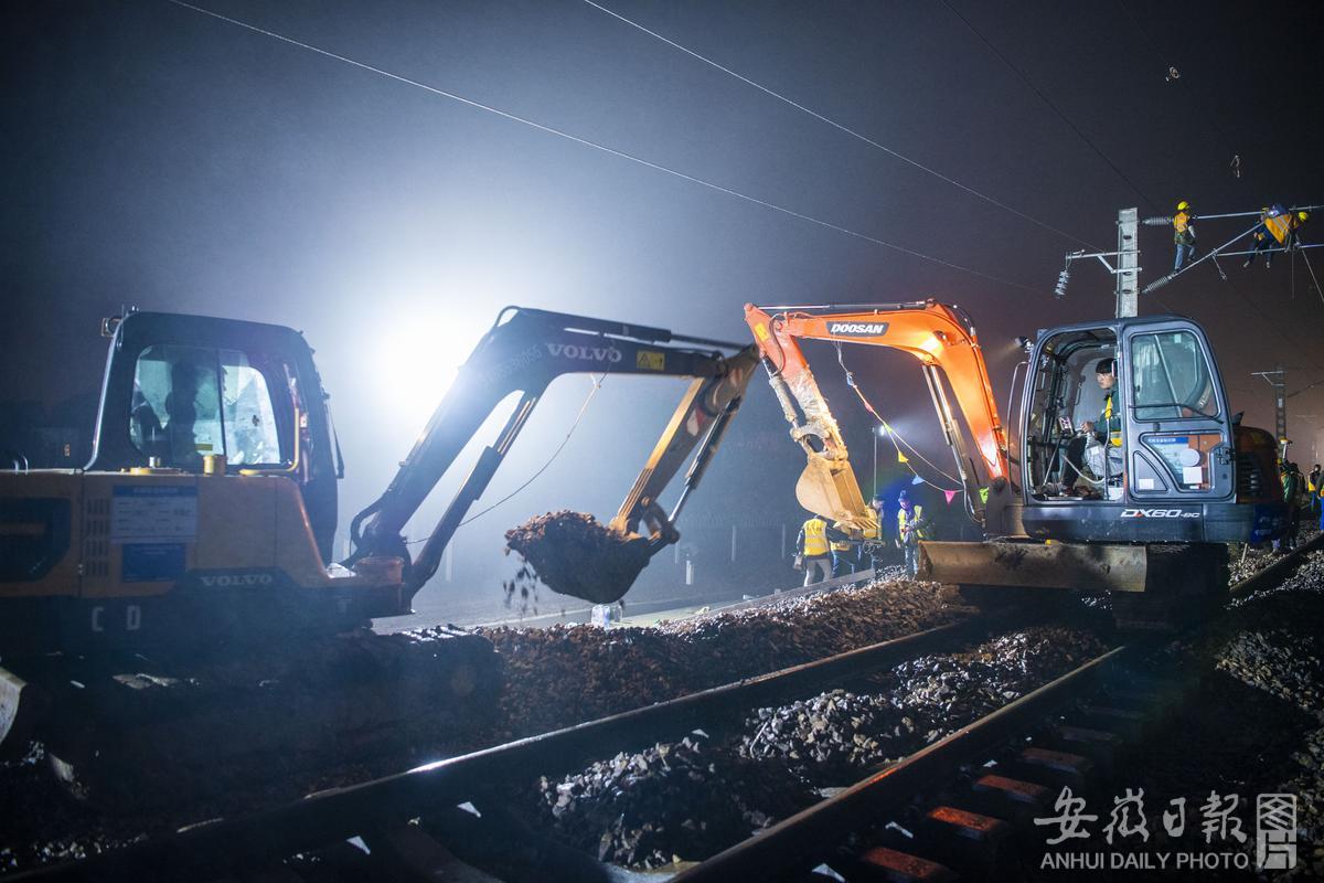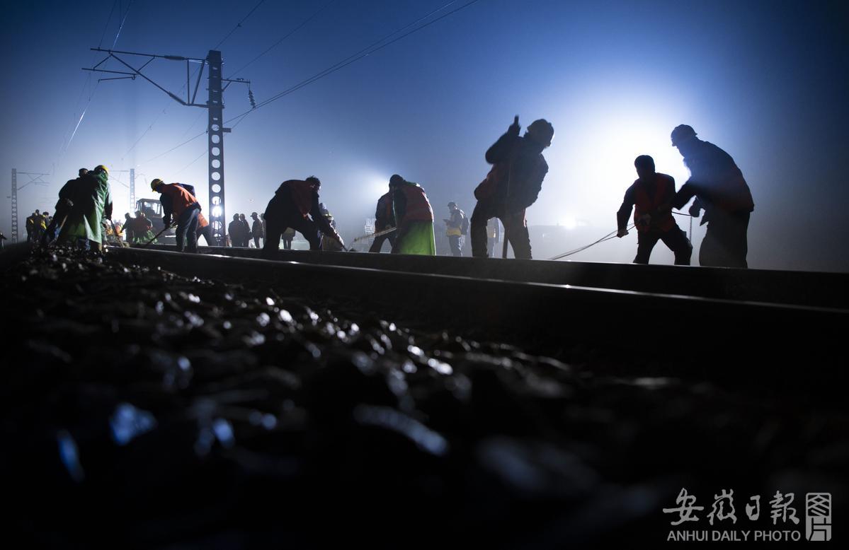引江济淮宁西铁路改建工程上行线拨接完工