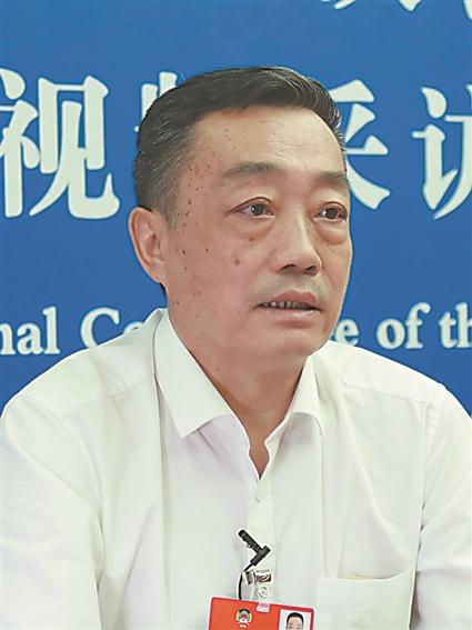 全国政协委员、省政协副主席牛立文接受采访。