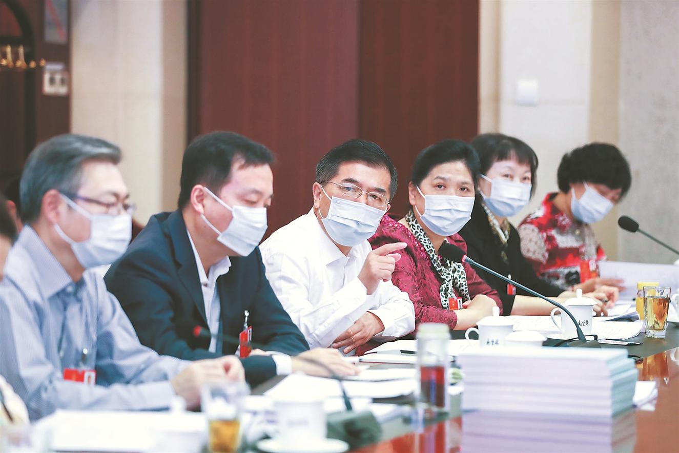 5月25日上午,出席十三届全国人大三次会议的安徽代表团代表在审议《中华人民共和国民法典(草案)》《全国人民代表大会关于建立健全香港特别行政区维护国家安全的法律制度和执行机制的决定(草案)》。