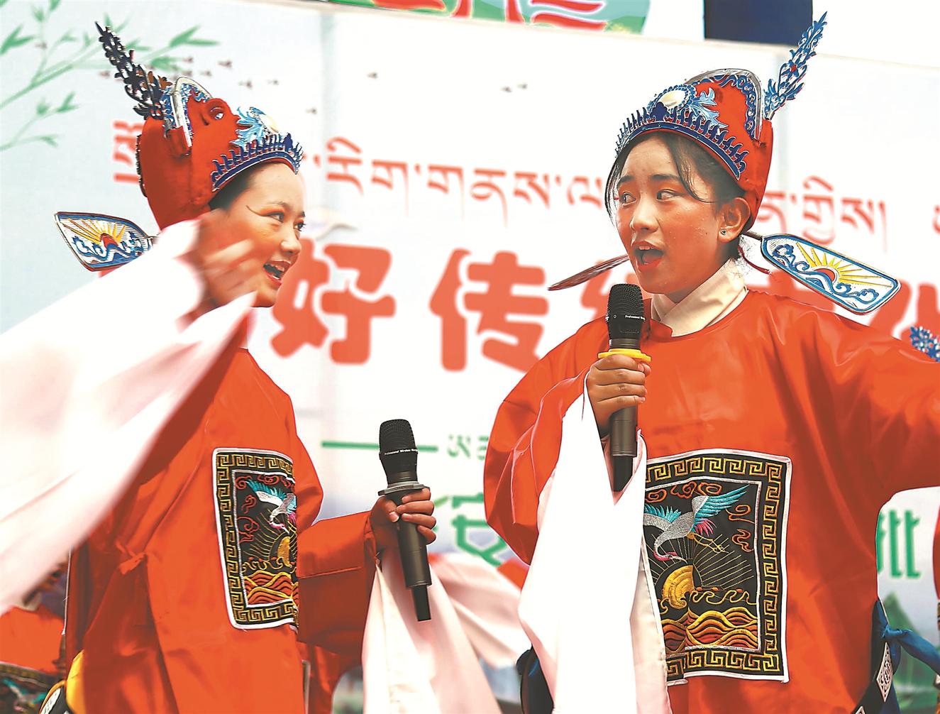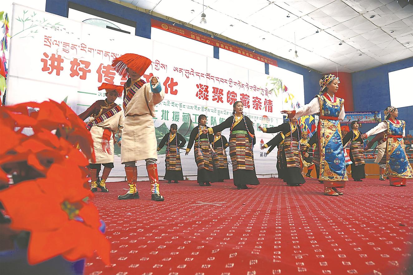 山南二高学生在表演具有藏族特色的舞蹈。