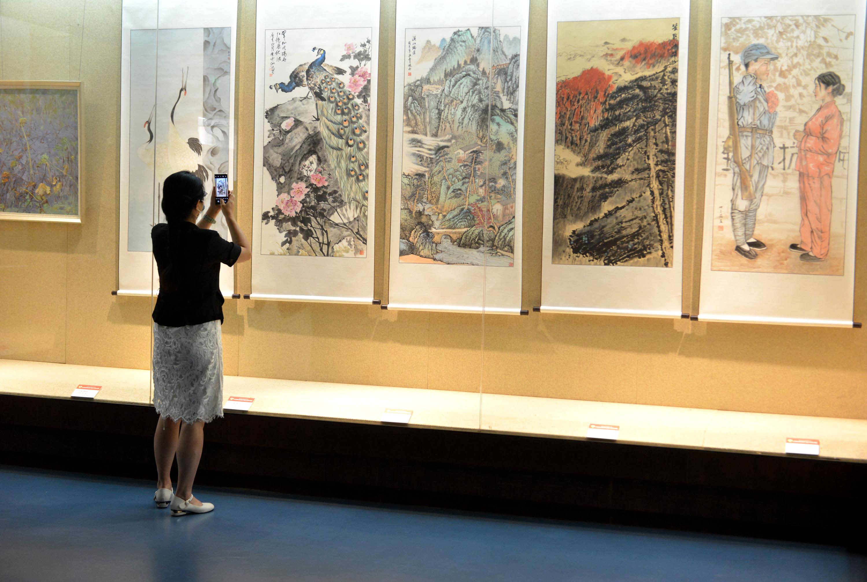 近日,观众在皖西博物馆观看六安市政协庆祝中国共产党成立100周年书画展。本网通讯员 郑金强 摄