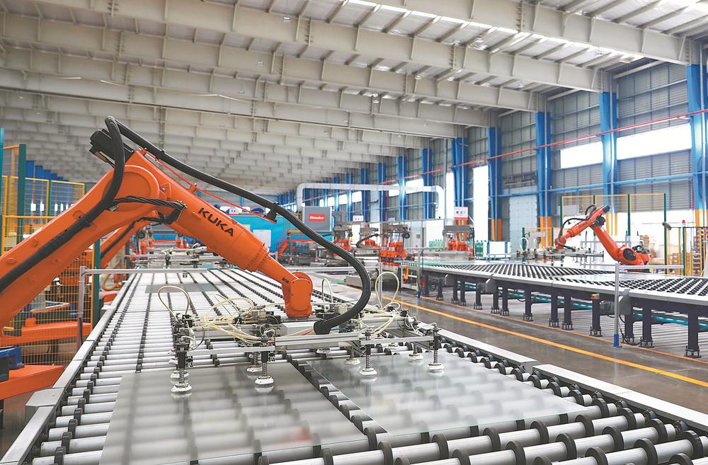 记者日前来到位于凤阳县的凤宁现代产业园,在亚玛顿集团凤阳硅谷智能公司全自动光伏(光电)玻璃元件生产线上,智能机器人正将一块块光伏玻璃从流水线上抓起、放下。