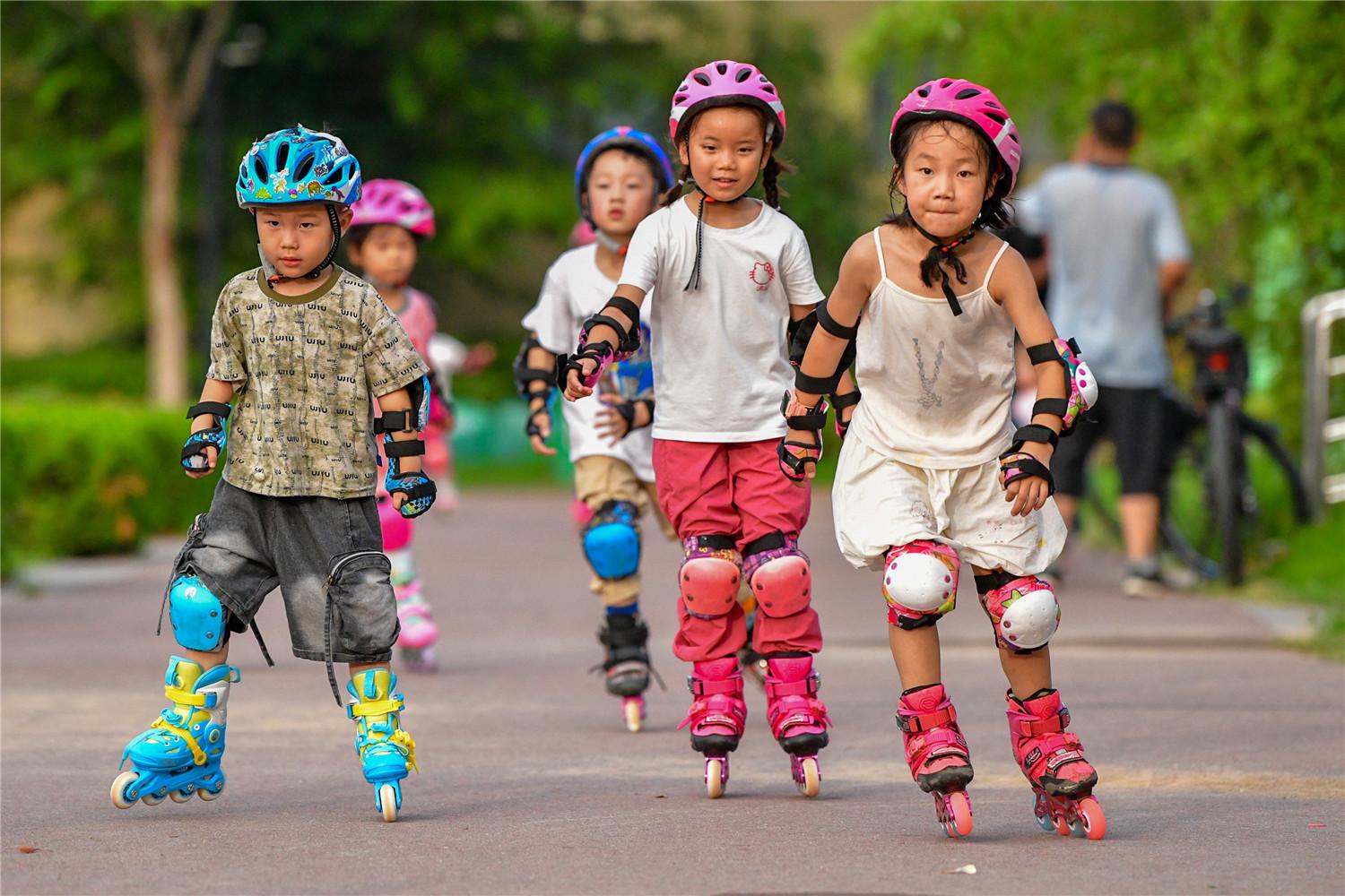 7月9日,在亳州市体育公园轮滑培训基地,小朋友在教练的指导下练习轮滑。暑假期间,亳州市不少小朋友选择练习轮滑,强身健体,健康快乐度暑假。本报通讯员 张刘艳 摄