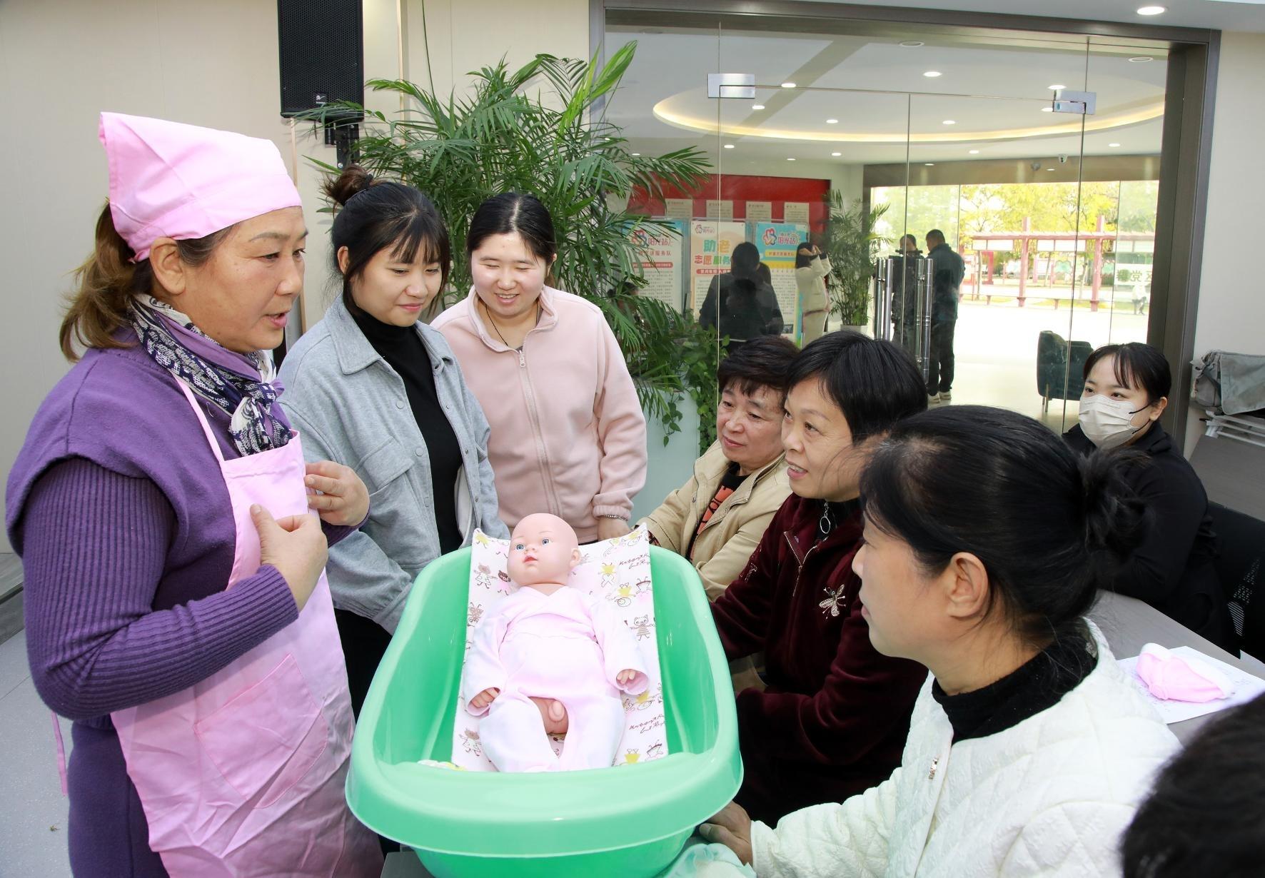 日前,在淮北市相山区滨河社区党群服务中心,月嫂技师对社区居民进行婴儿护理实操技能培训。近年来,该市妇联持续开展家政服务技能培训,促进妇女劳动力就业。本报通讯员 张红心 摄