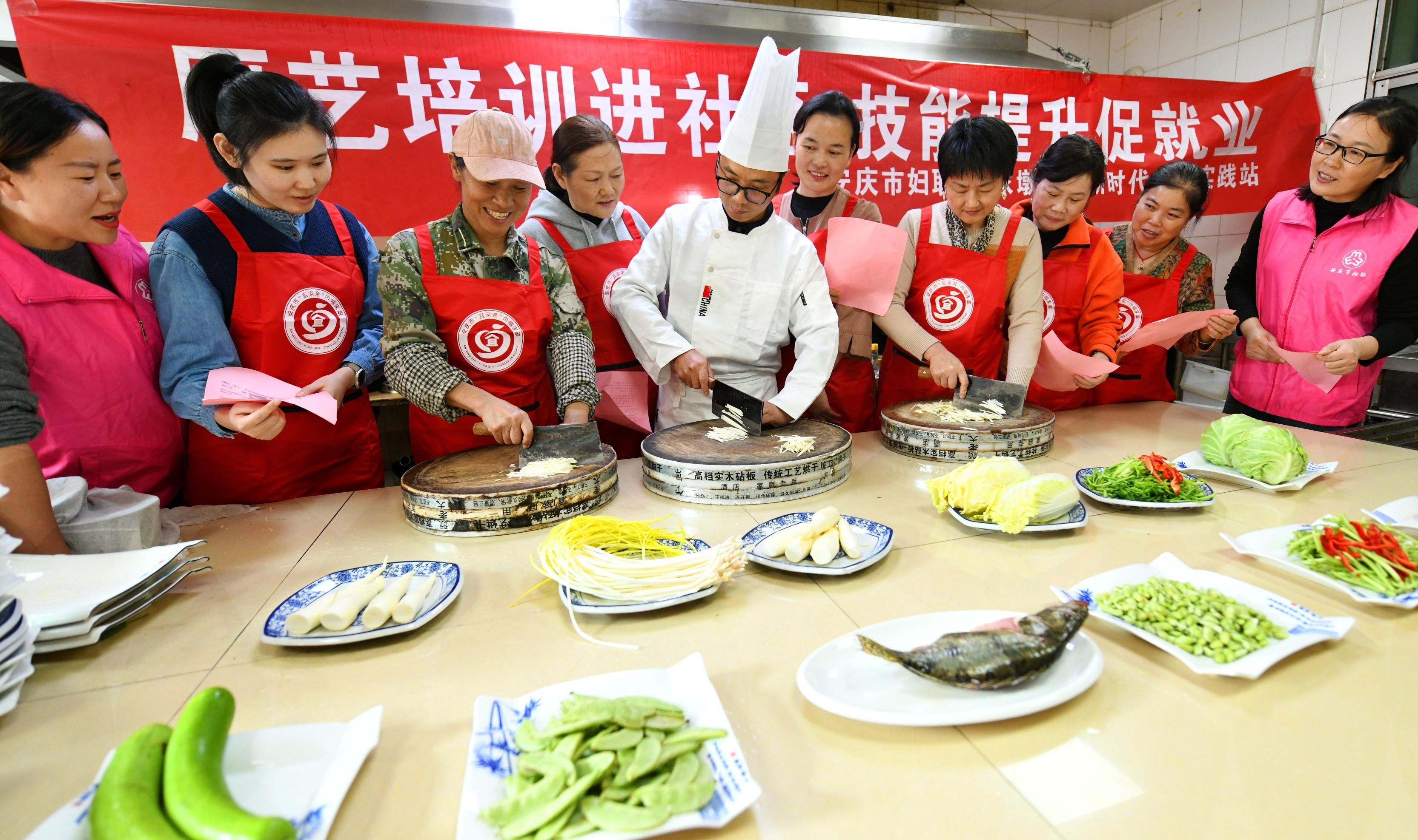 11月13日,在安庆市迎江区程家墩社区巾帼就业培训基地,安庆市妇联、迎江区妇联和程家墩社区联合组织开展厨艺培训。本报通讯员 黄有安 何巧霞 摄