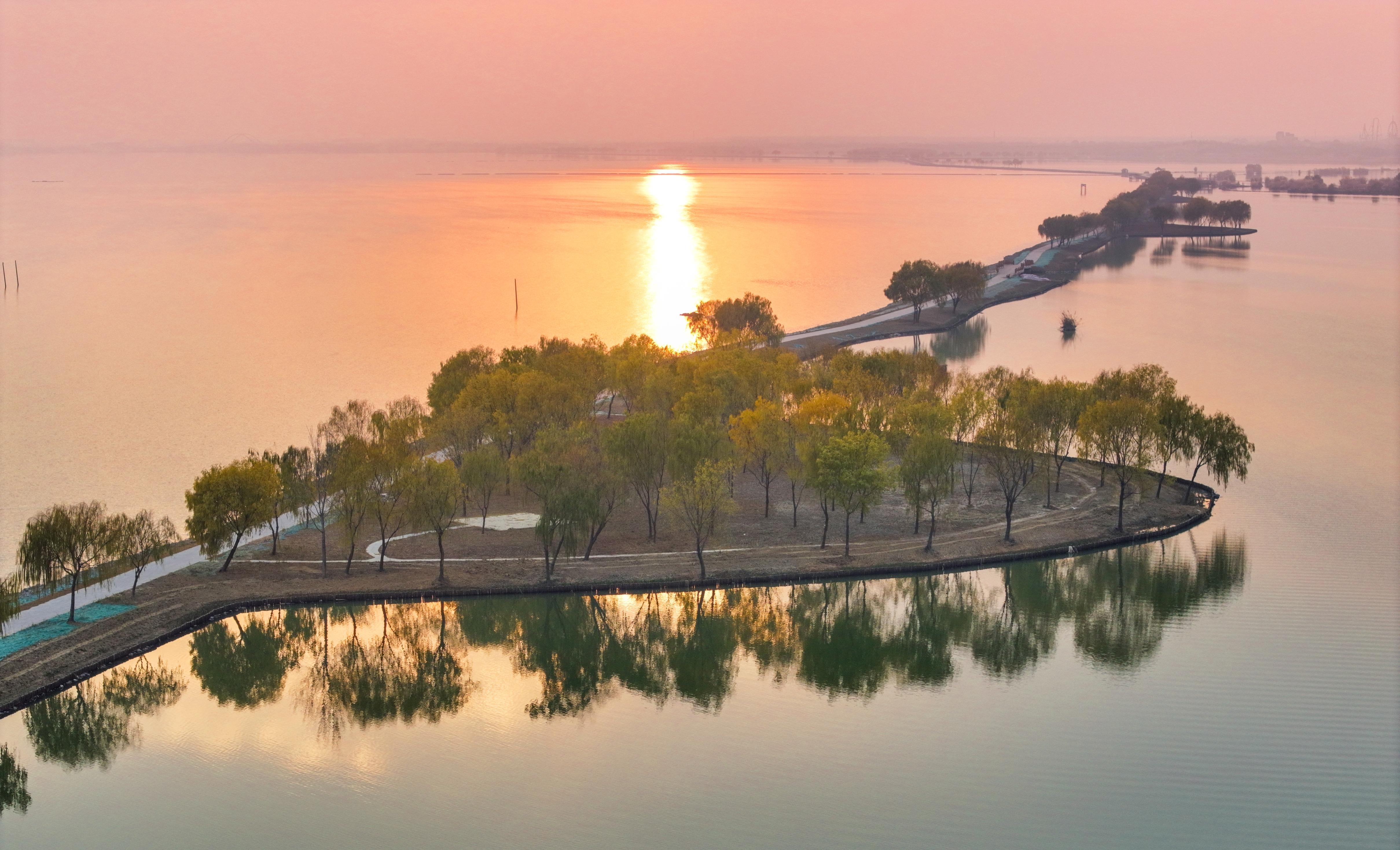 近年来,合肥市在改善巢湖沿湖防浪堤坝的同时,守住环保、安全底线,把防浪堤打造成巢湖“苏堤”,让市民在近湖、亲湖中更加爱湖。图为12月23日拍摄的巢湖“苏堤”一景。