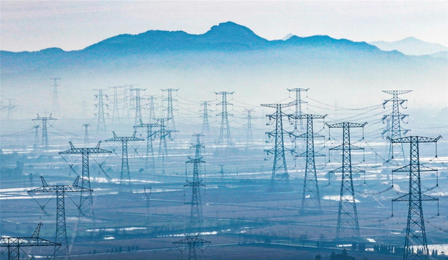 1月8日,芜湖市繁昌区孙村镇境内,“西电东送”特高压通道工程在薄雾中与村庄、田野、远山等相映成景。据了解,吉泉±1100千伏等多条特高压输电工程通过孙村镇境内的特高压走廊,将我国中西部地区的丰富电能源源不断地输送到华东地区,助力节能减排和高质量发展。