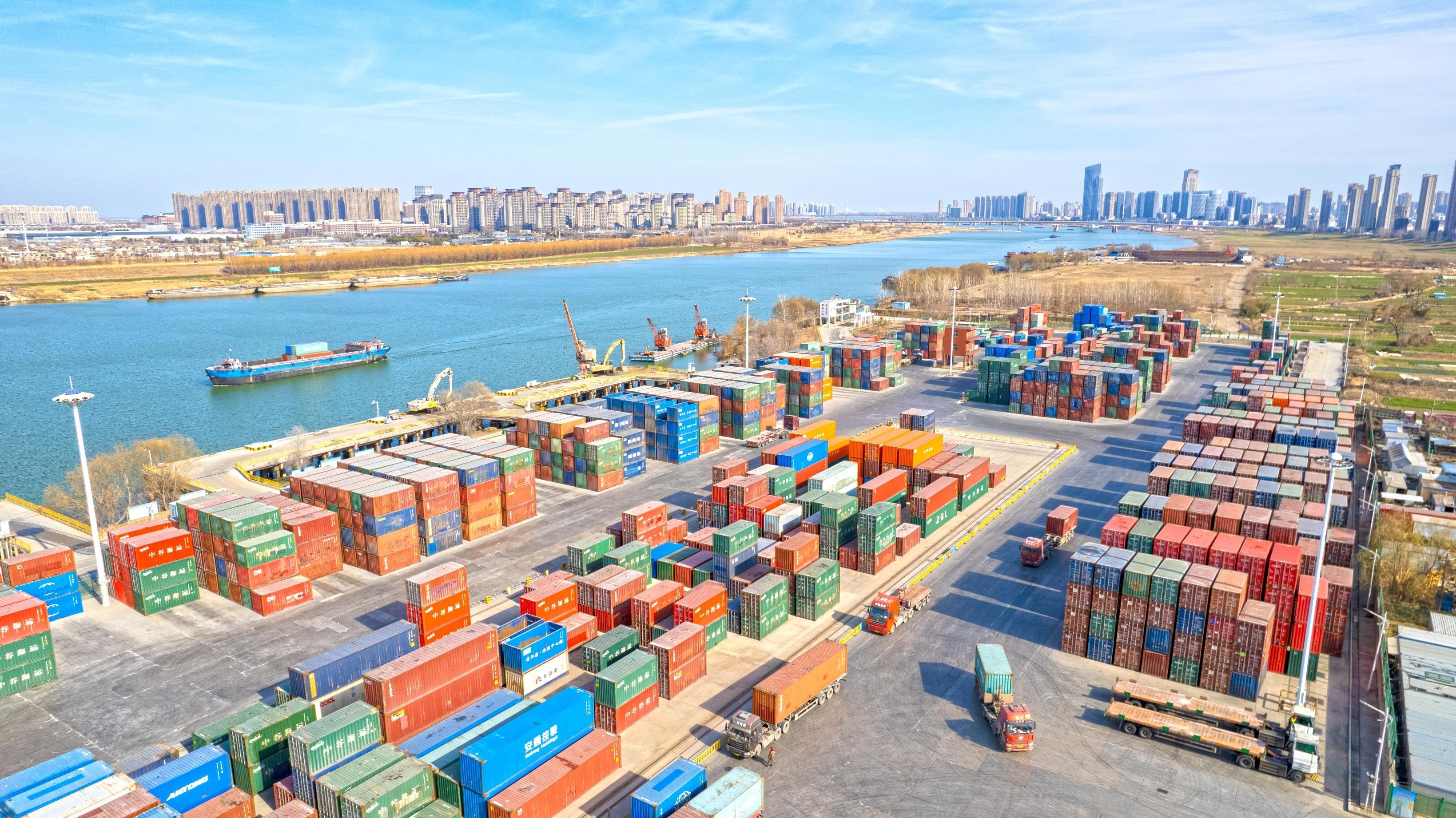 1月9日,千里淮河第一大港——蚌埠港国际集装箱码头一片繁忙。
