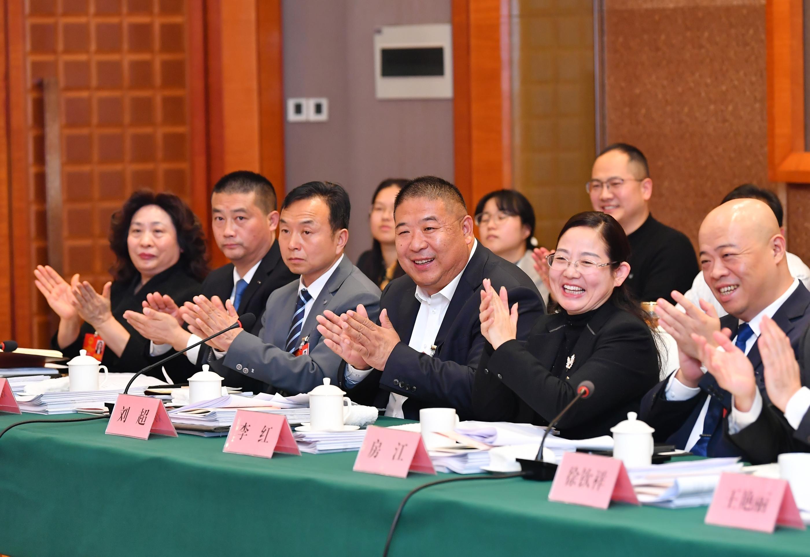 1月20日,六安市代表团代表在审议《政府工作报告》。