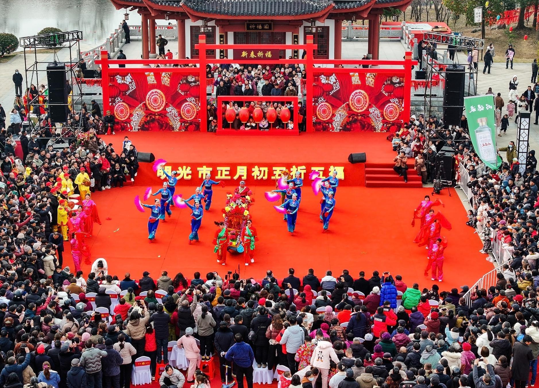 2月2日下午,农历正月初五,滁州明光市九道湾祈福阁广场举办了“明光花灯调演大赛·非遗展览展示”活动。本报通讯员 王绪波 摄