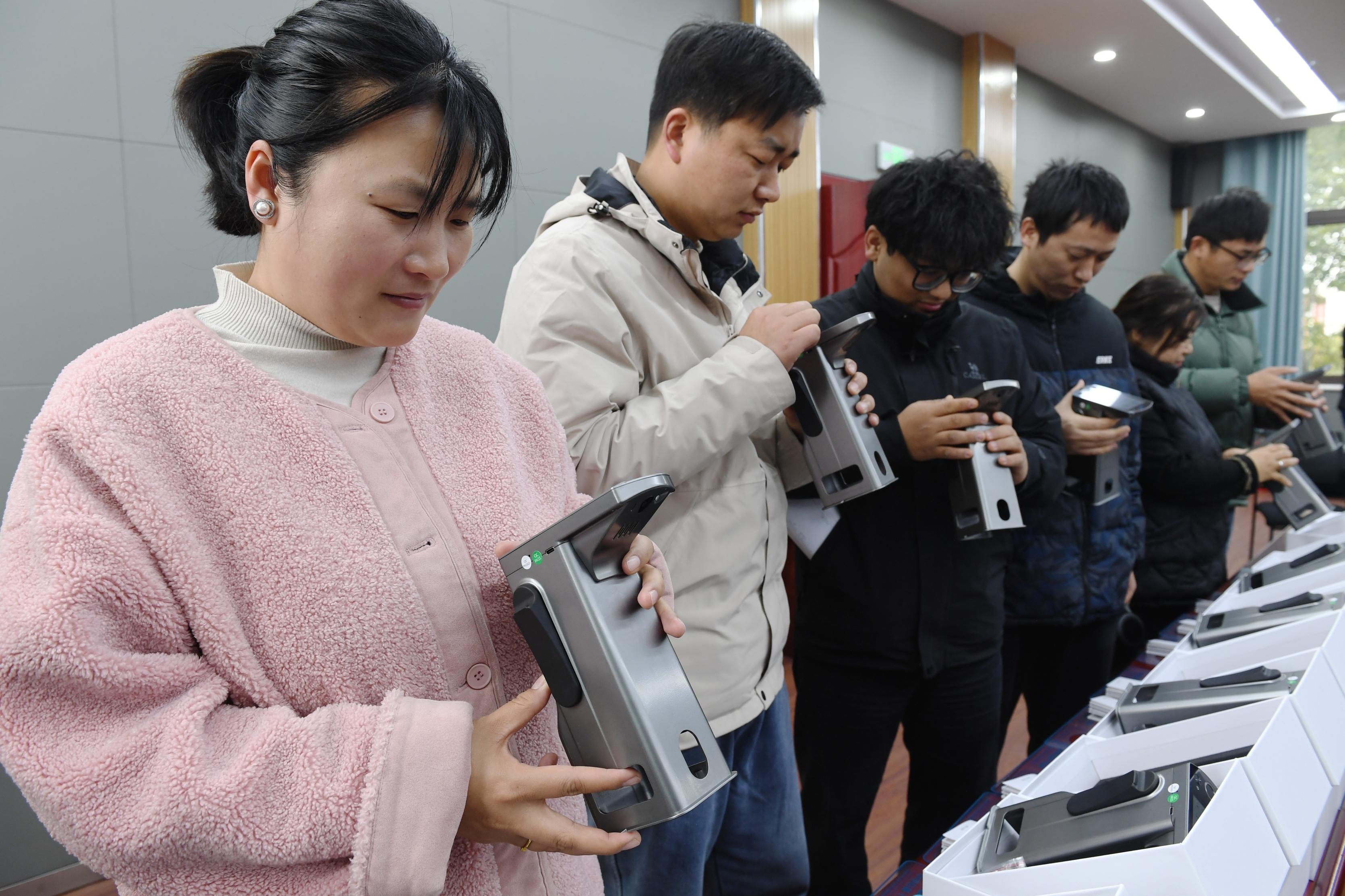 2月25日,参加培训的村干部领用“量子云印章”。