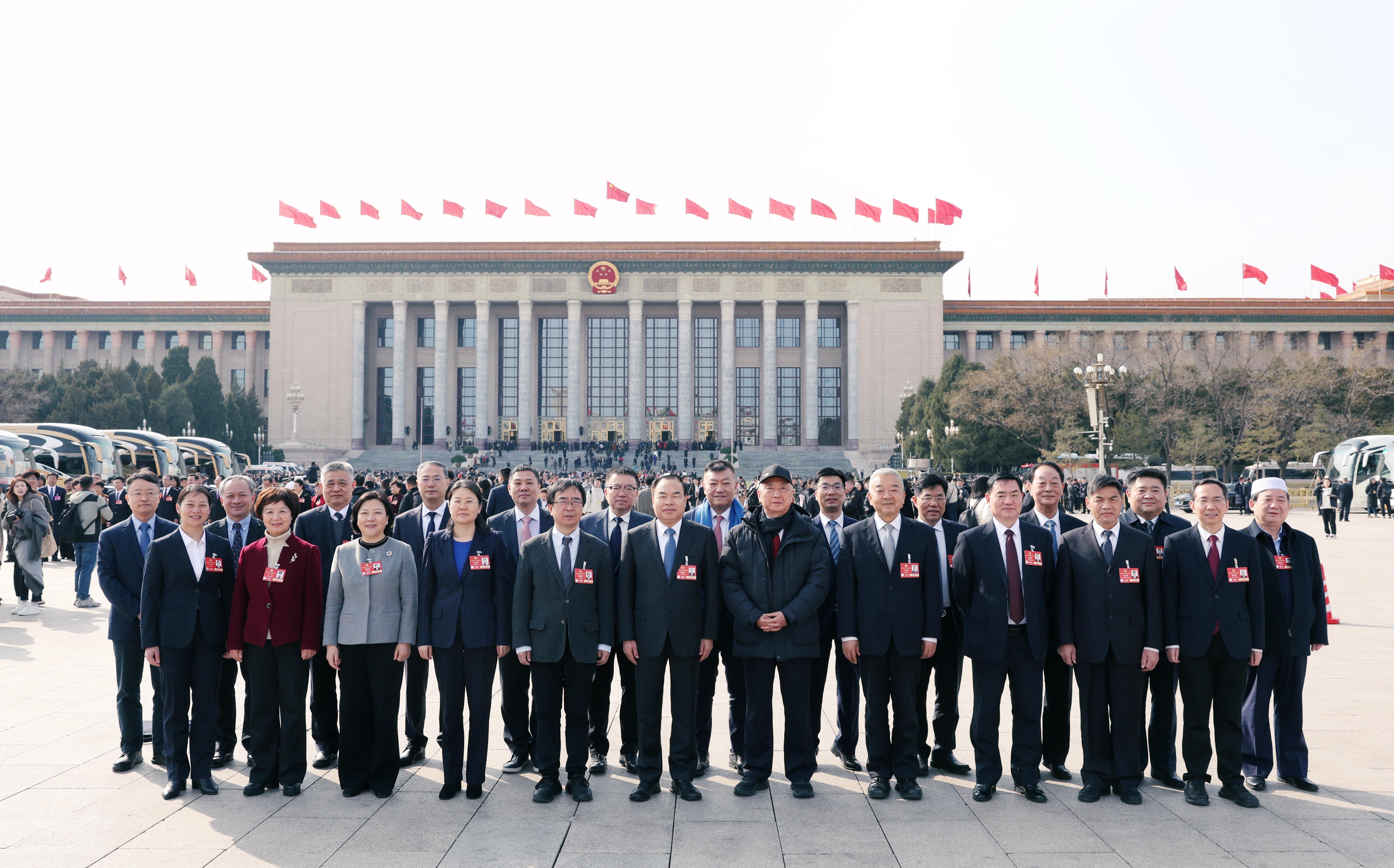 3月4日下午,出席全国政协十四届三次会议的住皖全国政协委员在人民大会堂前合影。