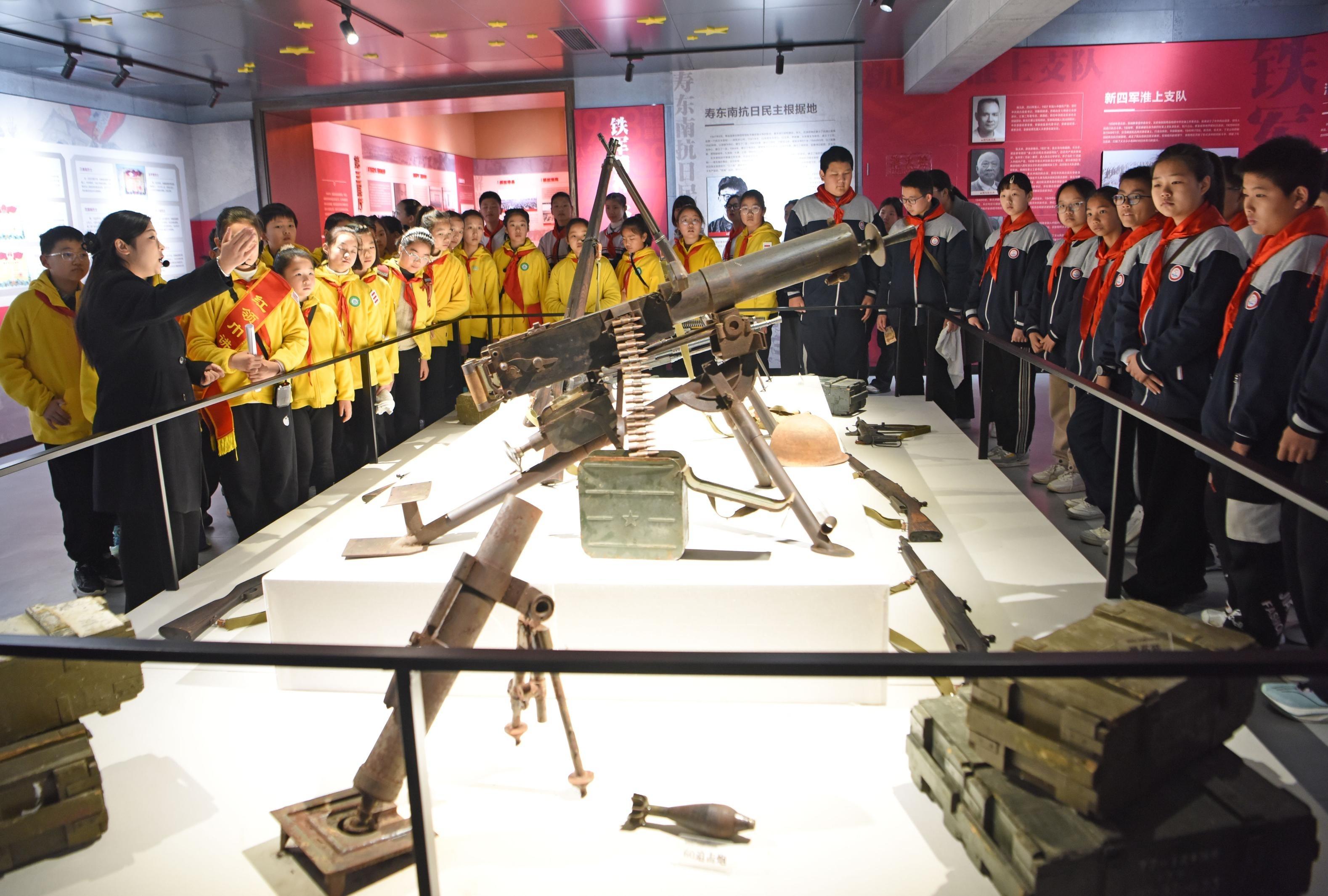 4月1日,淮南市烈士事迹陈列馆,小学生在聆听先烈事迹,传承英烈精神。清明节前夕,该市组织开展烈士陵园祭扫活动,向英烈敬献鲜花,寄托哀思。特约摄影 陈彬 摄
