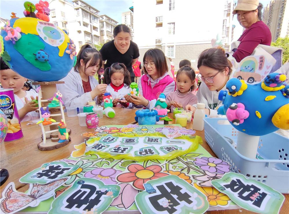 4月15日,六安市裕安区平桥乡金马社区新时代文明实践站,志愿者和老师带领小朋友利用废旧物品制作地球模型,让大家从小树立保护环境、爱护地球的意识。本报通讯员 田凯平 摄