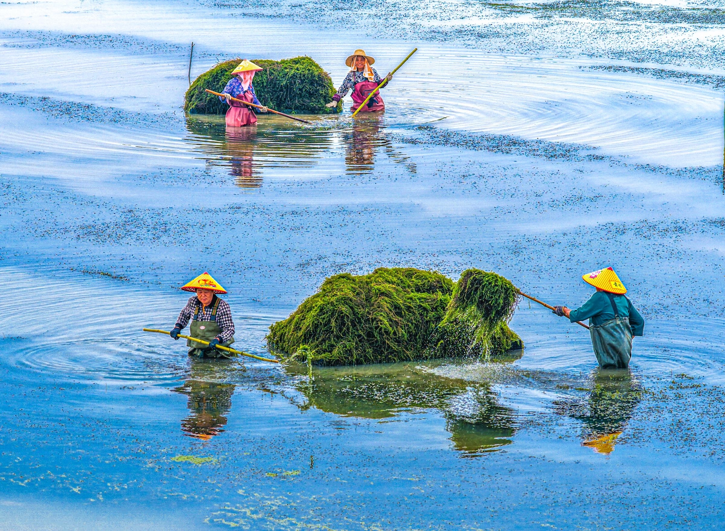 近日,芜湖市繁昌区平铺镇新塘村龙虾养殖基地,养殖户在清理水草。作为国家级稻渔综合种养示范基地,繁昌区依托当地河湖水域优势,以“稻虾轮作”模式进行生态种养,实现“一水双收”,促进农民增收,助力乡村振兴。