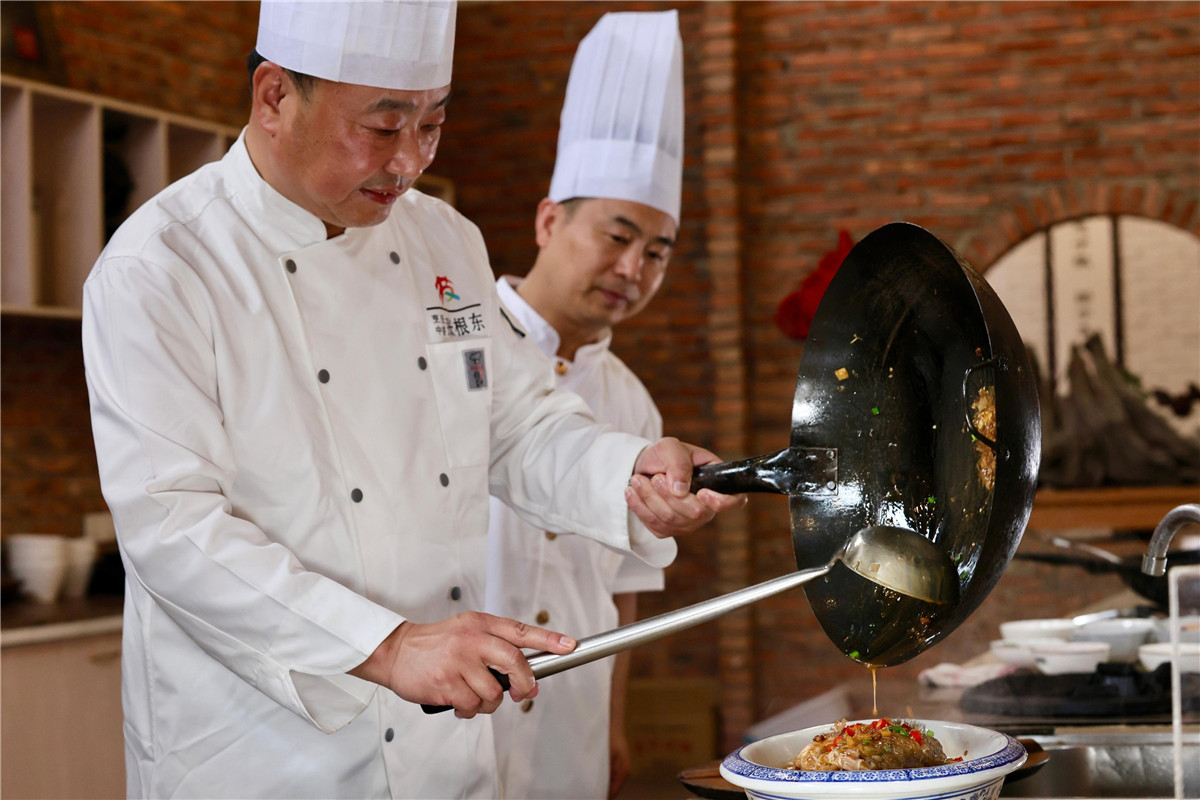 “徽菜的核心是文化,做好徽菜要了解徽文化。”作为非遗代表性传承人,张根东始终将文化传播视为使命。他走进黄山职业技术学院、安徽新东方等院校授课;每年举办技艺竞赛,既考年轻人传统菜的功底,也鼓励他们创新菜品;更带着团队赴北京、深圳等地交流,推动全国徽菜馆用黄山当地原料做正宗风味徽菜,带动当地食材产业产值快速增长。