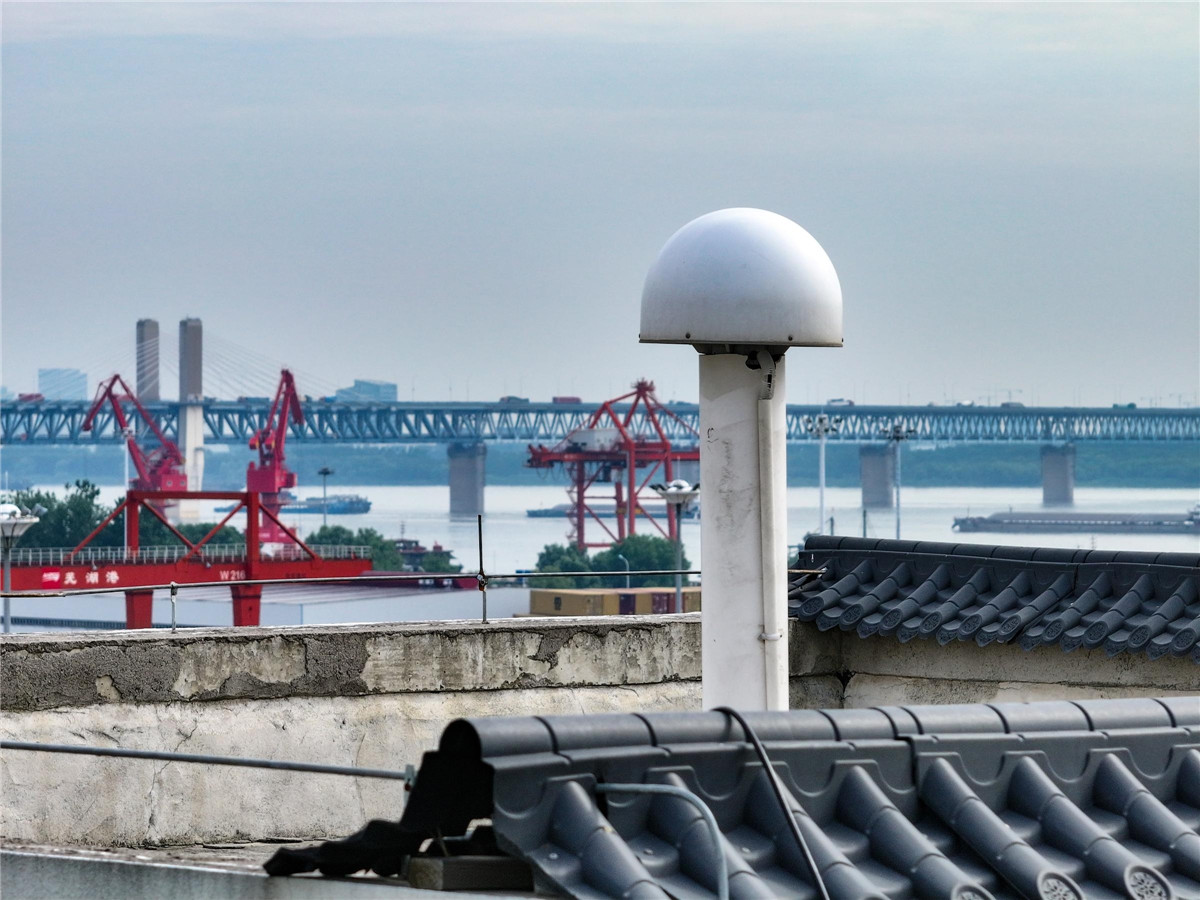 6月25日拍摄的位于芜湖港朱家桥智慧港口的差分基准站,该基准站可实现无人智能运输车的高精度定位。