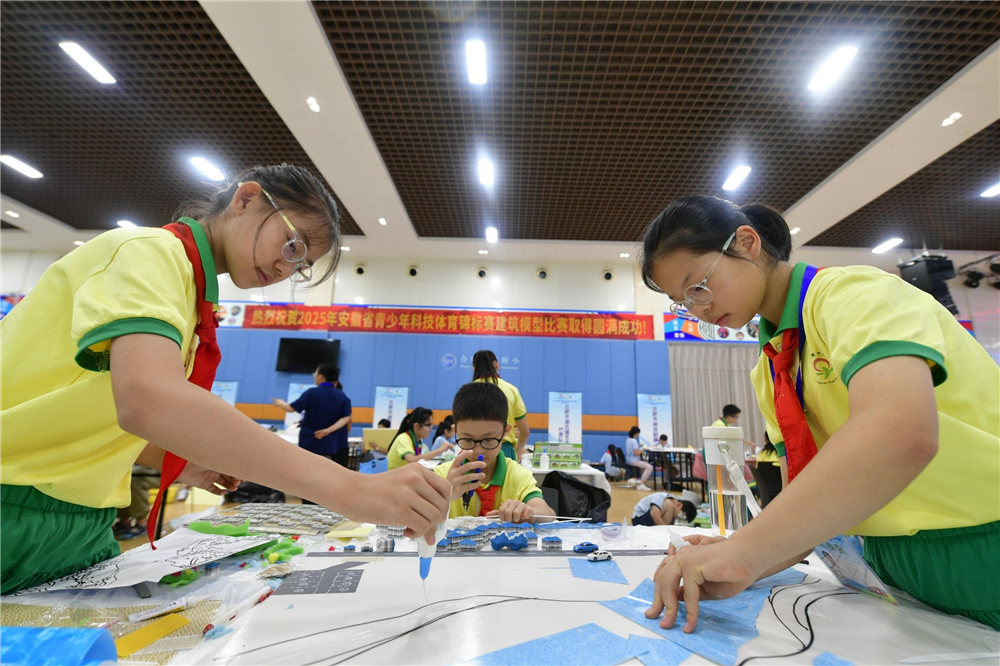 8月8日至12日,2025年安徽省青少年科技体育锦标赛建筑模型比赛在合肥举行。此次赛事设“援梦之城”城堡创意设计赛、木桥梁结构设计赛、“水调江南”写意石桥创意赛等7个个人赛(小学男女组、中学组)和“城市梦想”区域规划赛、创意花窗设计制作赛、“城市地标建筑”场景设计制作赛等3个团体赛(小学组、中学组),来自全省的11支代表队220名运动员参加比赛。