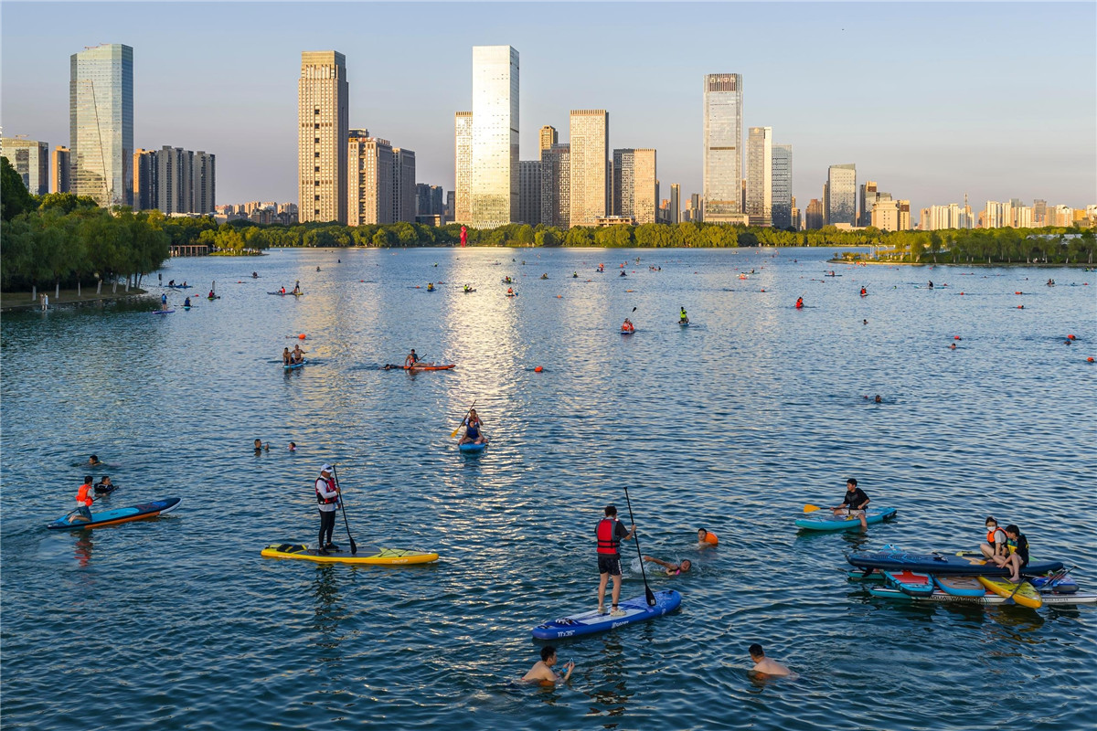 8月15日傍晚,合肥市天鹅湖波光粼粼的水面上,桨板爱好者们犹如鱼儿般穿梭前行,将城市水系变成流动的运动场。近年来,合肥通过系统化推进“幸福河湖”建设,从根本上让“亲水”变得可实现、可持续。