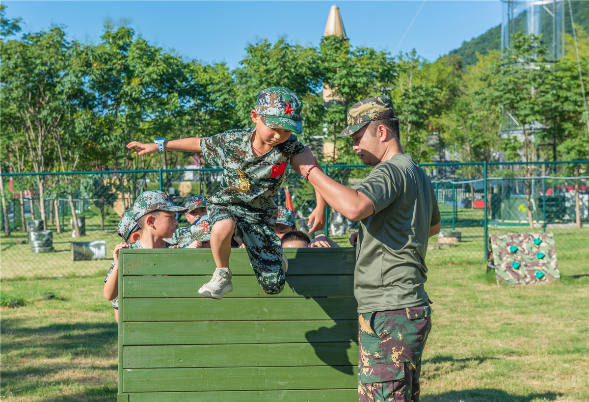 8月16日,小朋友在青阳县革命老区杨田镇五梅村研学基地参与军事体验活动。暑期,池州市青阳县革命老区杨田镇五梅村热闹非凡,一批批身着迷彩服的研学学生走进这里,在骄阳下体验站军姿、参观军事装备、聆听红色故事,一场场沉浸式国防教育活动让这个红色村落焕发新的活力,为当地旅游业态注入新动能。