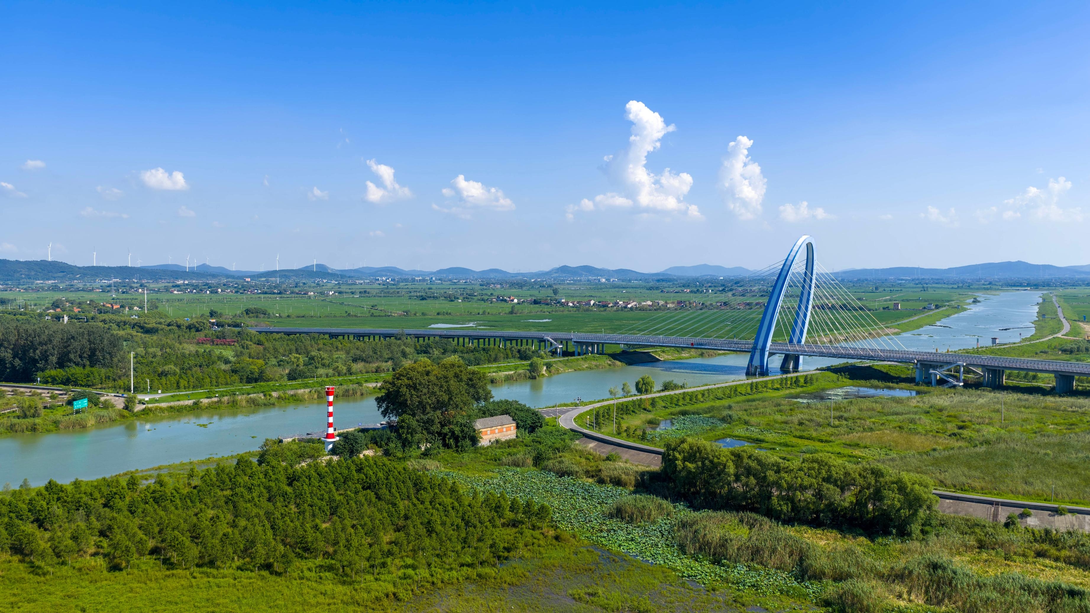 8月18日拍摄的庐江马尾河湿地兆河大桥段。