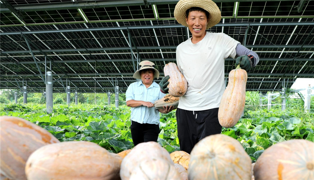 9月7日,阜阳市颍东区新华街道老集村蔬菜种植基地,村民在采摘南瓜。近年来,颍东区引导各村发展特色种植产业,促进农业增效、农民增收。本报通讯员 宿飞 摄
