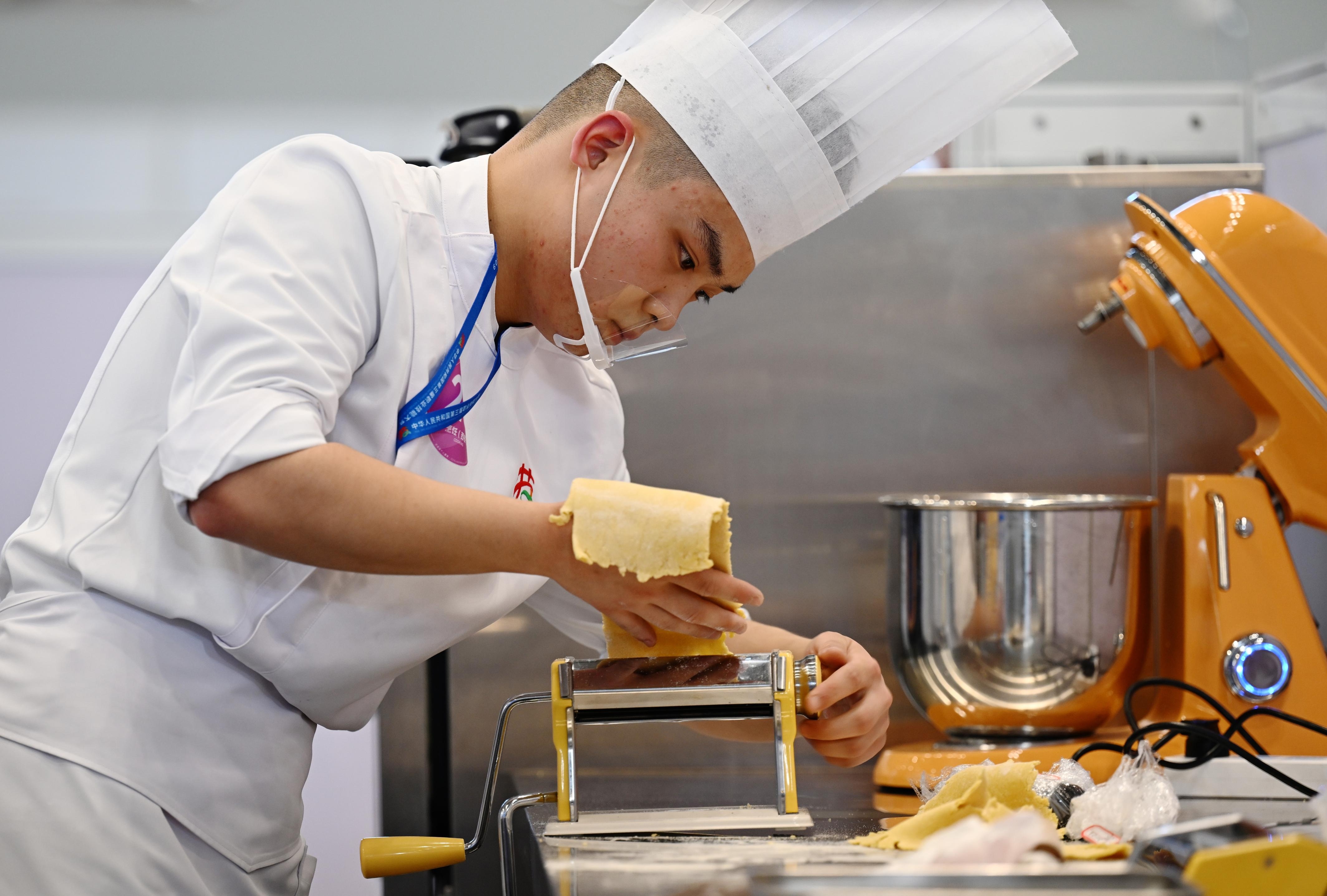 9月20日,来自安徽新东方烹饪高级技工学校有限公司的王志伟参加烹饪(西餐)项目比赛,最终获得该项目金牌。