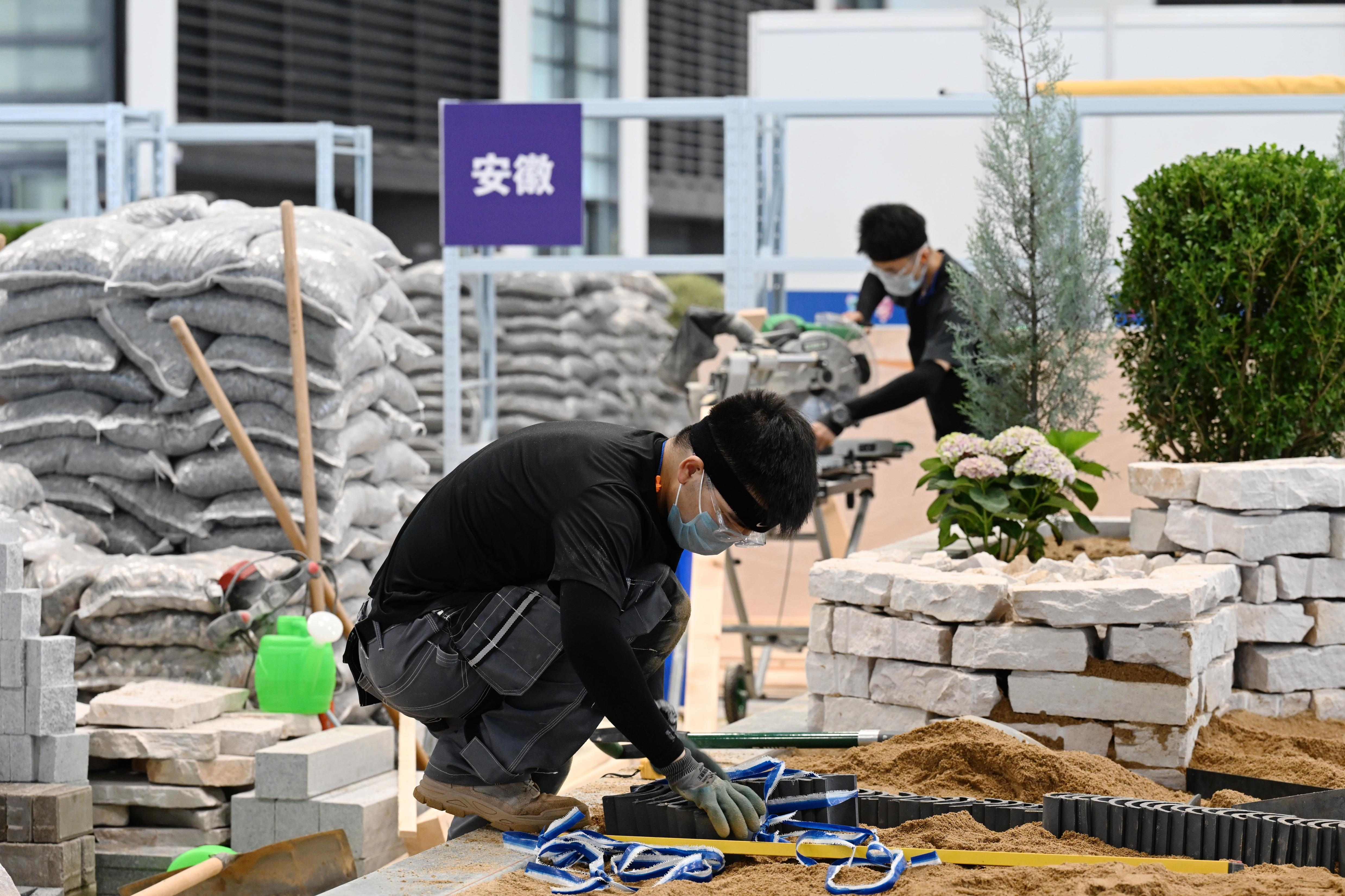 9月21日,来自黄山学院的聂铸(前)、蔡润参加园艺项目比赛,最终获得该项目金牌。