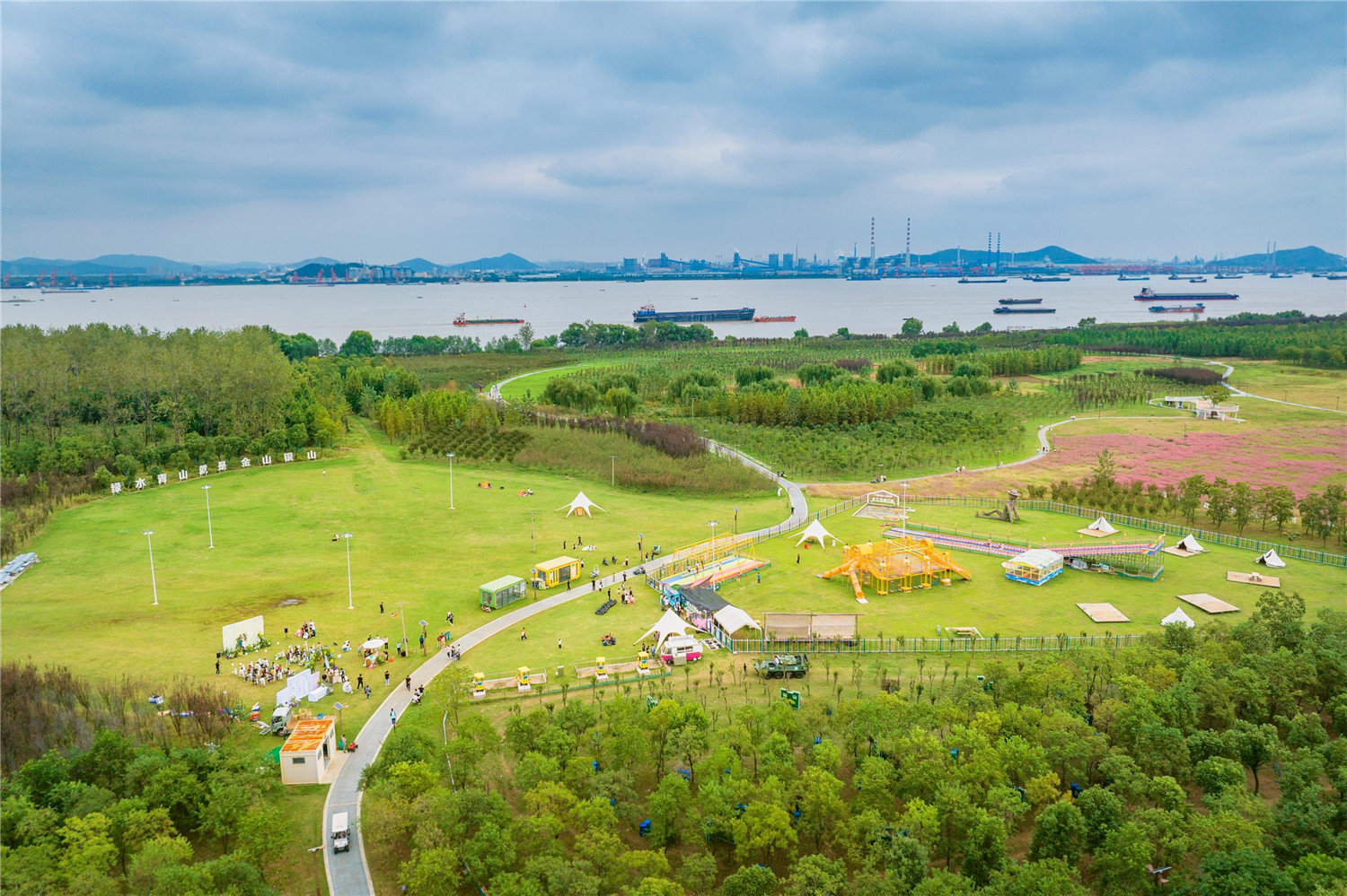10月3日,游客在马鞍山市和县浮沙圩湿地公园观光游览。今年国庆中秋假期,马鞍山市和县丰富文旅供给,促进假日文化和旅游消费。