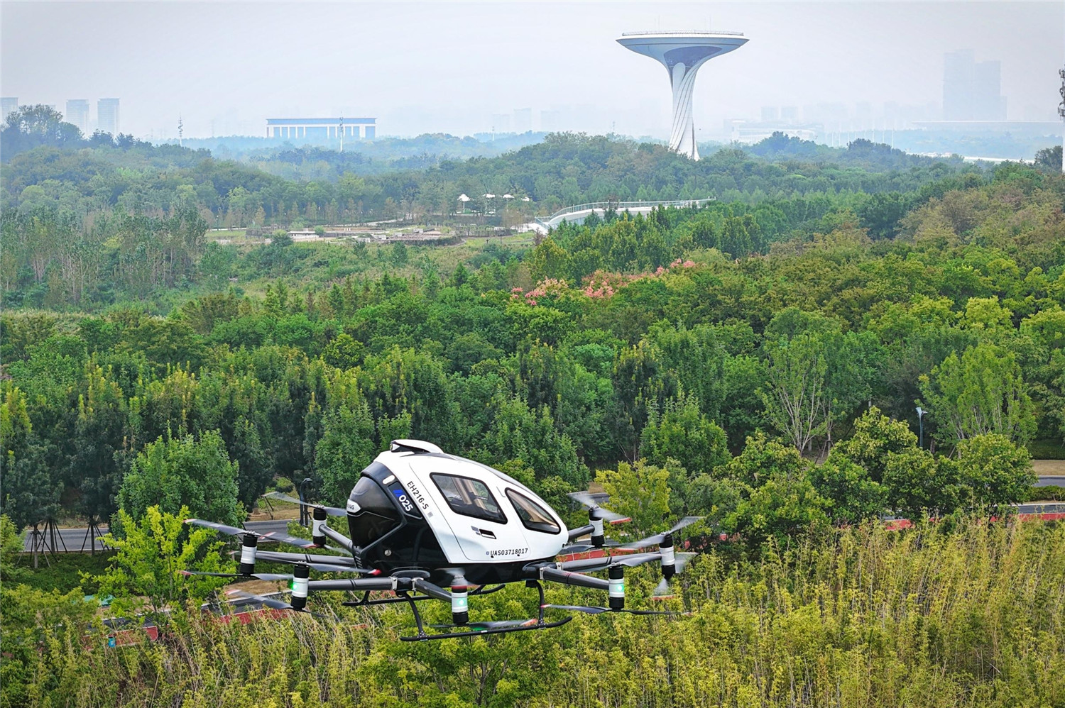 9月23日,合肥骆岗空中交通运营中心,合翼航空无人驾驶载人电动垂直起降(eVTOL)航空器在演示飞行测试。
