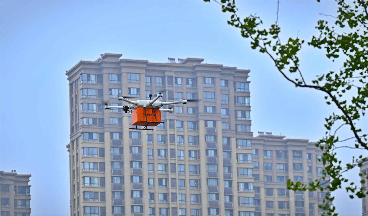 在合肥市包河区方兴社区卫生服务中心,伴随着引擎嗡鸣声,无人机从天而降,医护人员迅速将待检血液样本放入其中,集中送往检测机构。依托迅蚁科技,合肥现已开通20多条无人机血液运输航线。除医疗场景外,邮递配送、外卖配送也逐步飞进市民生活。
