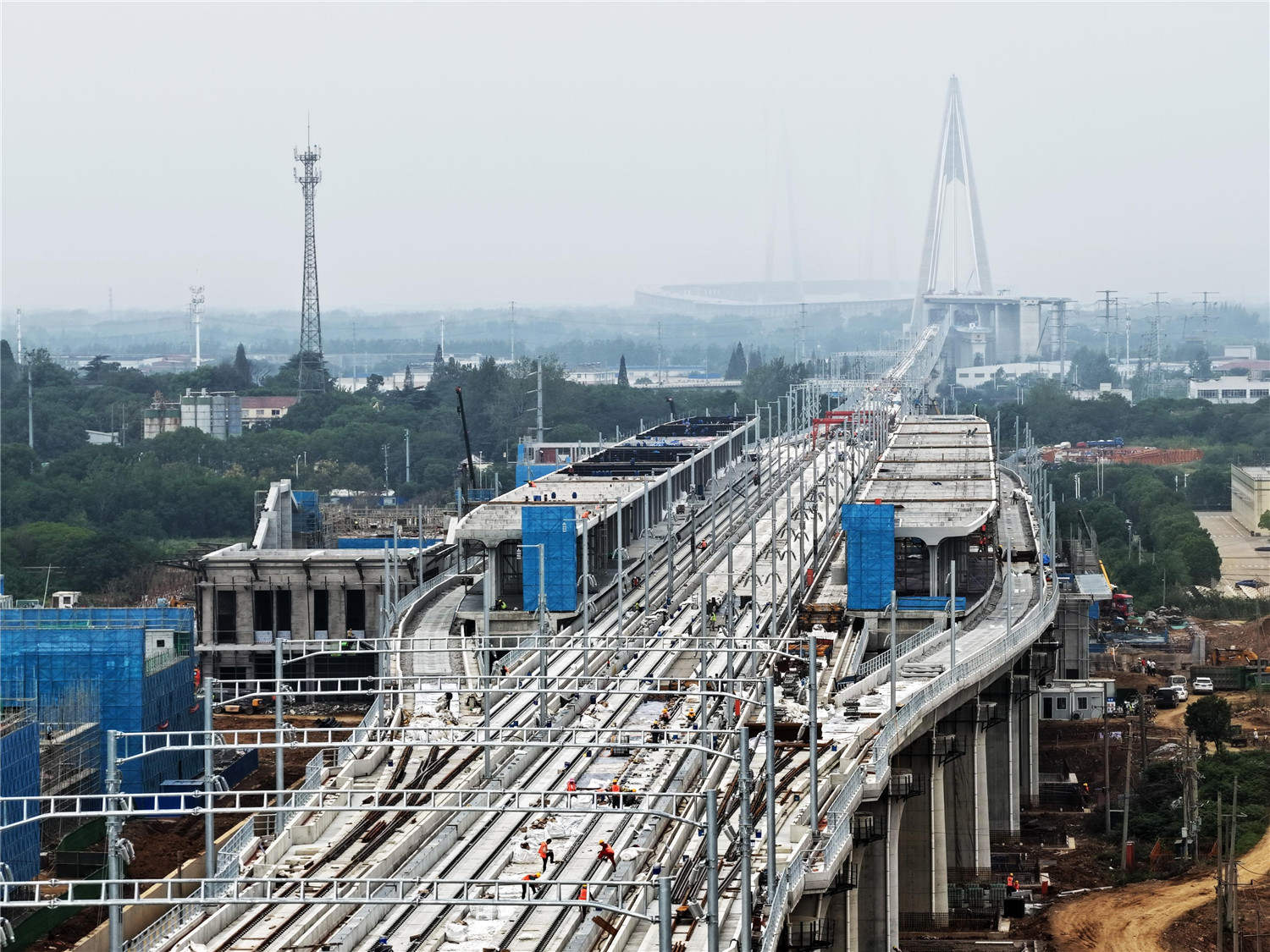 10月4日,马鞍山市当涂县的巢马城际铁路建设现场一派繁忙,工人坚守岗位加紧施工。巢马城际铁路设计时速350公里,是安徽省通往沪苏浙城市群的重要通道。本报通讯员 王玉实 摄