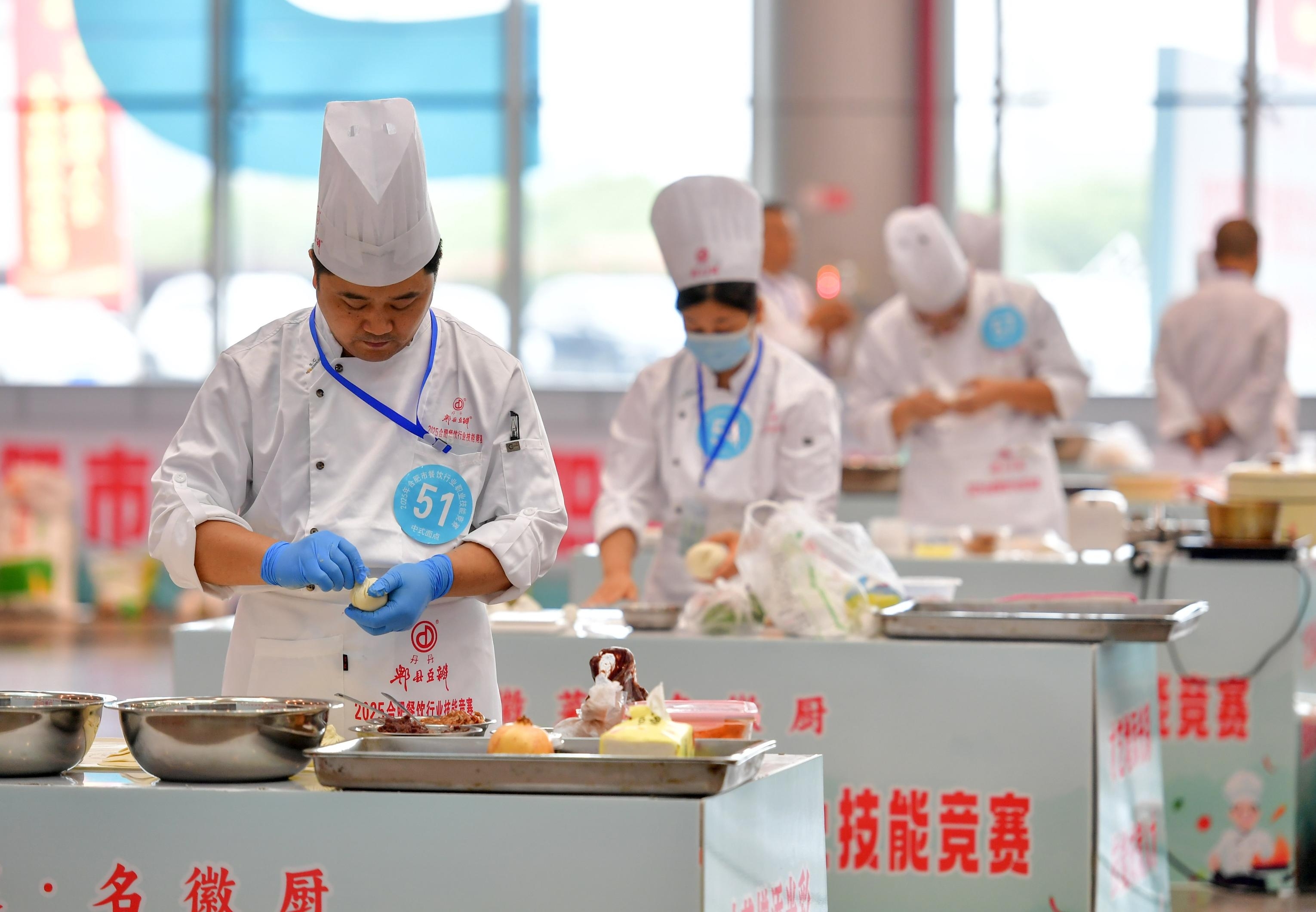10月15日,2025年合肥市餐饮技能竞赛在肥西县举行。参赛选手在比赛现场制作中式面点。此次竞赛设有中式烹调、西式面点师等项目,来自24家餐饮企业的89名选手同台竞技。本报通讯员 徐勇 摄