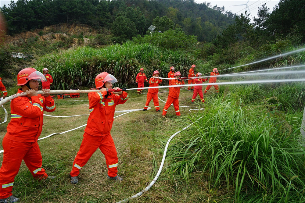 近日,在怀宁县石镜乡红星水库,森林防灭火一线应急队员在进行实操培训。进入秋冬季节,山火易发,该县认真落实森林防火各项防御准备措施,筑牢森林防火“铜墙铁壁”。本报通讯员 檀志扬 杨振坤 摄