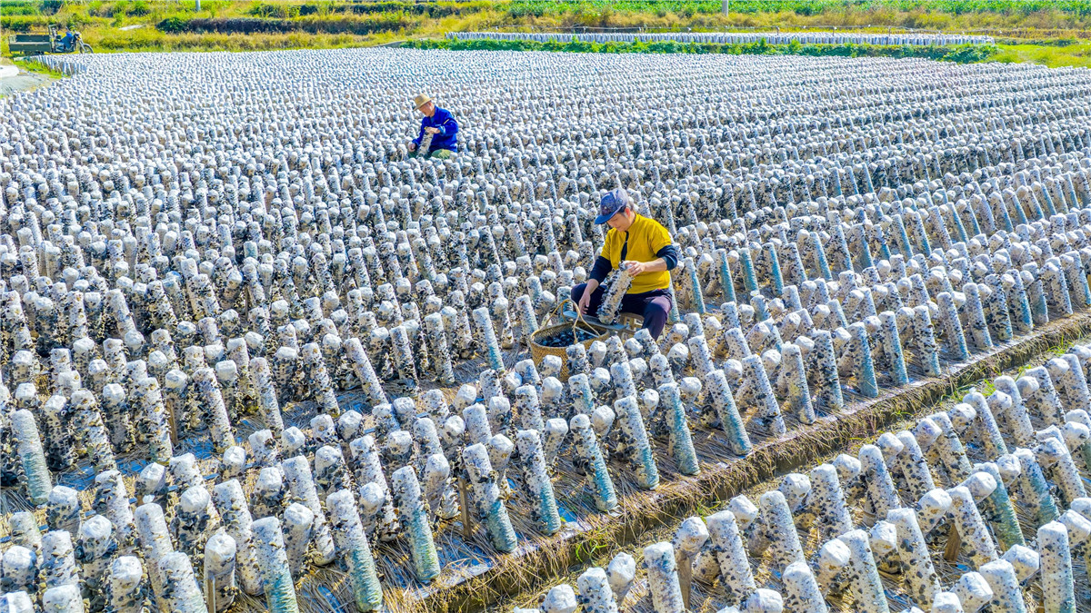 11月2日,池州市石台县七都镇银堤村,村民在田间采摘黑木耳。当地黑木耳近日迎来收获期,村民抢抓农时采摘黑木耳供应市场。