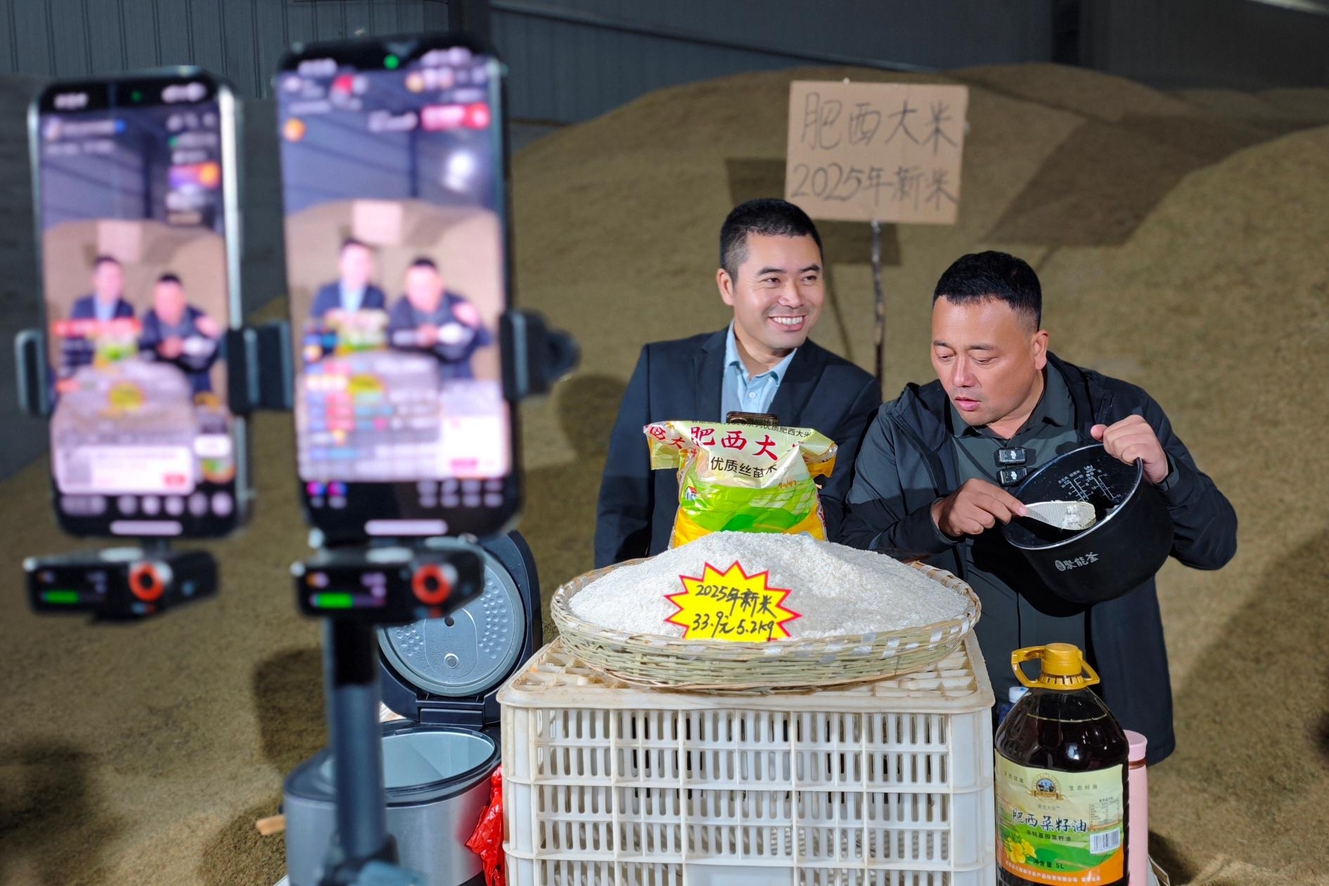 在肥西县柿树岗乡,“书记三人行”直播间的农产品往往当天就销售一空,村民们立刻能拿到货款。